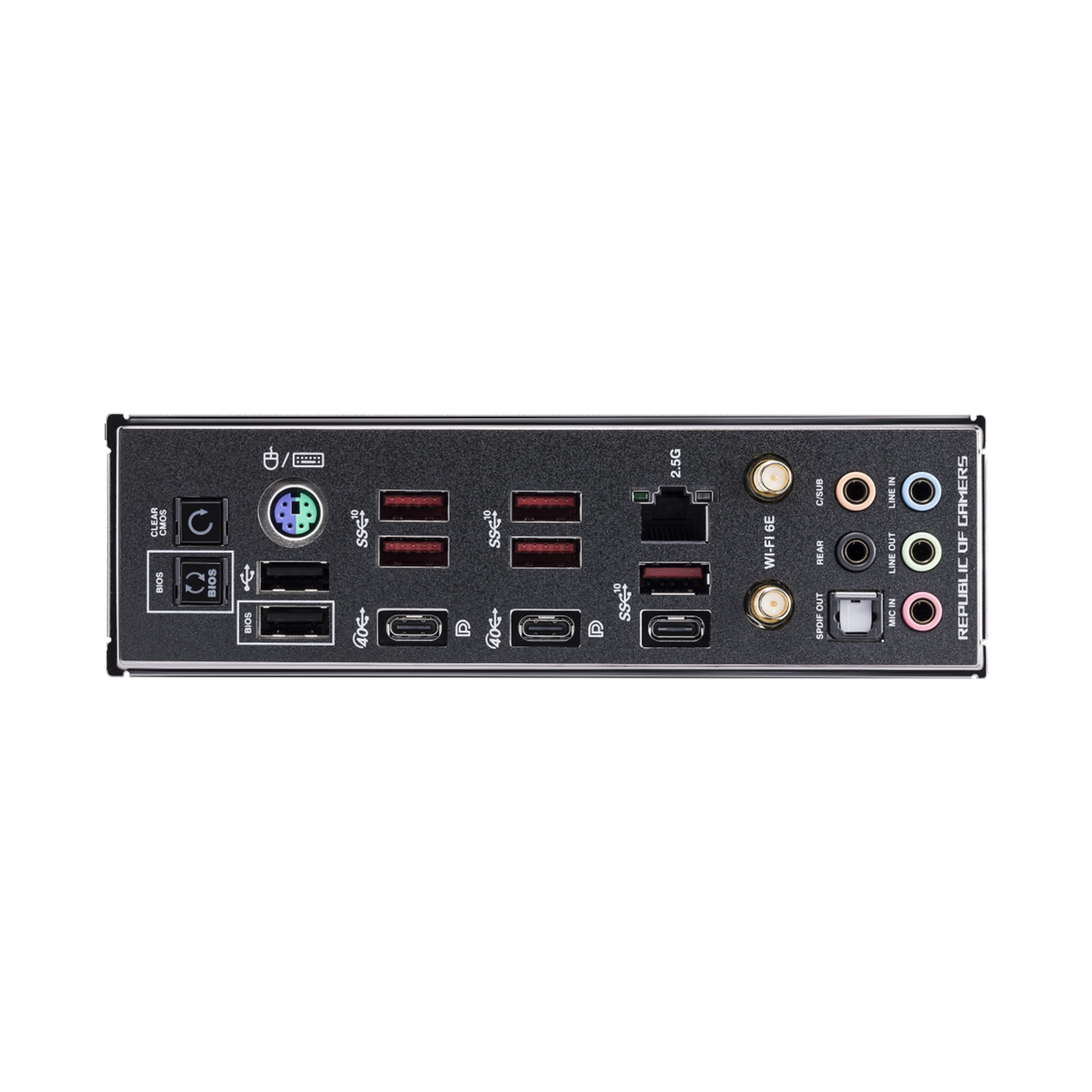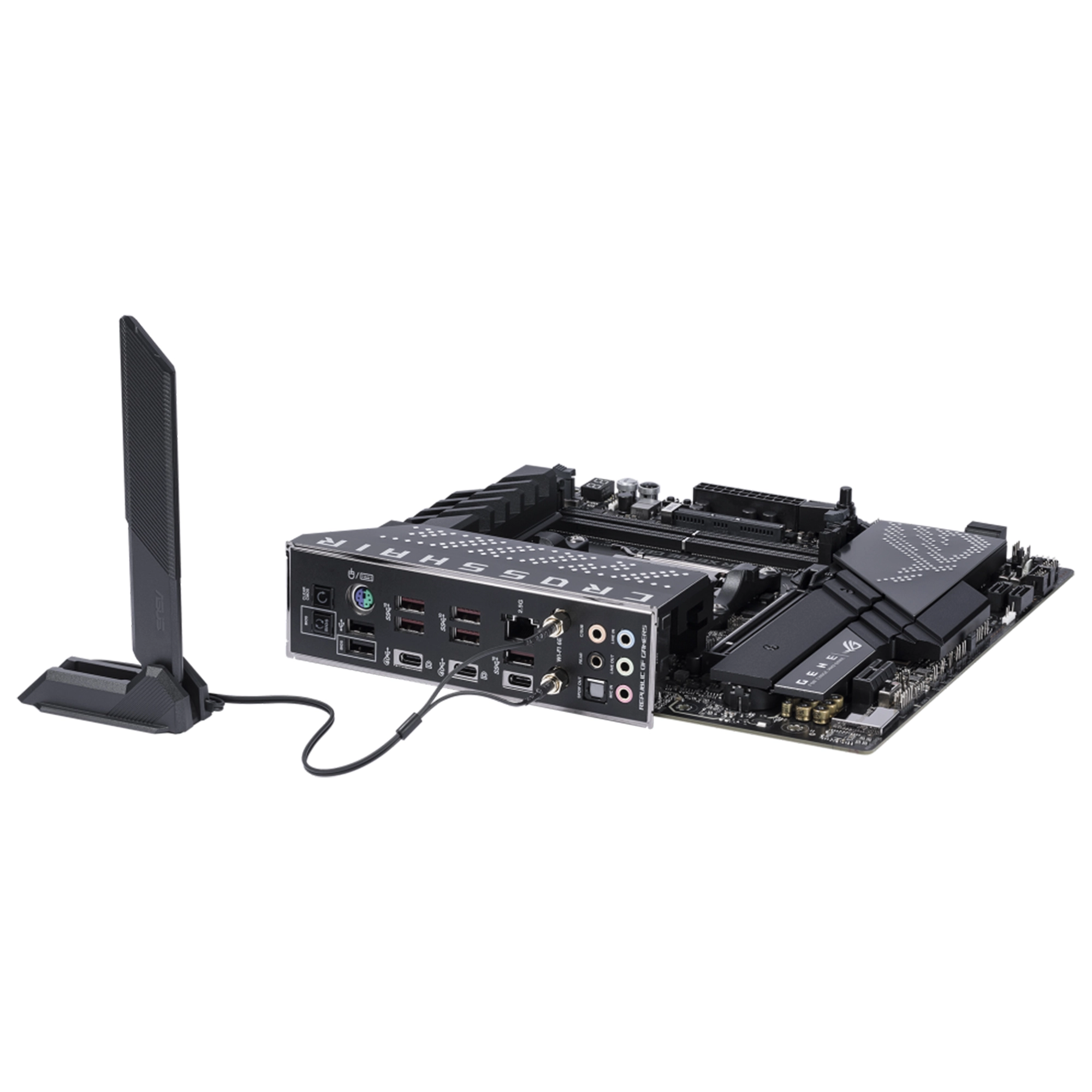 ASUS ROG CROSSHAIR X670E GENE предлагает большое количество портов USB на задней панели интерфейсов, в том числе два USB4 Type-C с пропускной способностью 40 Гбит/с и поддержкой вывода изображения на дисплее 8K. За высокую скорость передачи данных в сети отвечают интерфейсы Wi-Fi 6E и Ethernet 2.5G, а эффект полного погружения гарантирует встроенная аудиосистема SupremeFX.