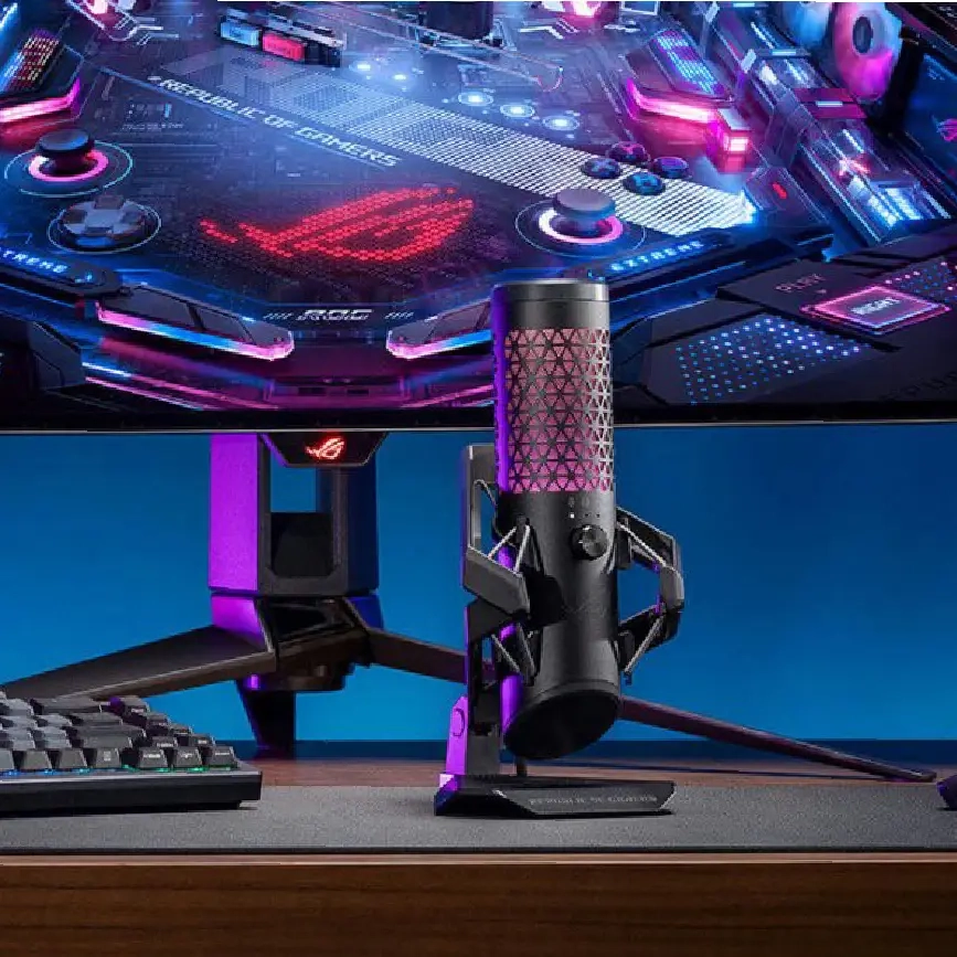 ROG Carnyx – профессиональный кардиоидный USB-микрофон с крупным 25-мм конденсаторным капсюлем, который передаёт глубокий и естественный звук в формате 192 кГц / 24 бита. Он оснащён фильтром высоких частот для устранения низкочастотных шумов, встроенным поп-фильтром для чистого произношения взрывных согласных и металлическим подвесом, снижающим влияние внешних вибраций.