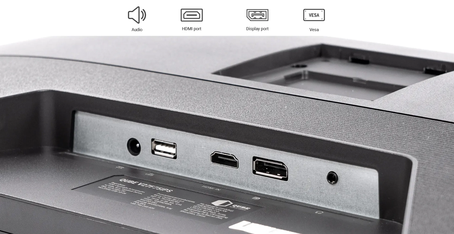 Монитор Qube B27F75-IPS также имеет стандарт VESA 75 мм х 75 мм, что позволяет установить его на стену или специальную крепежную систему. Это отличное решение для тех, кто хочет оптимизировать использование рабочего пространства или создать эффектный мультимедийный уголок.