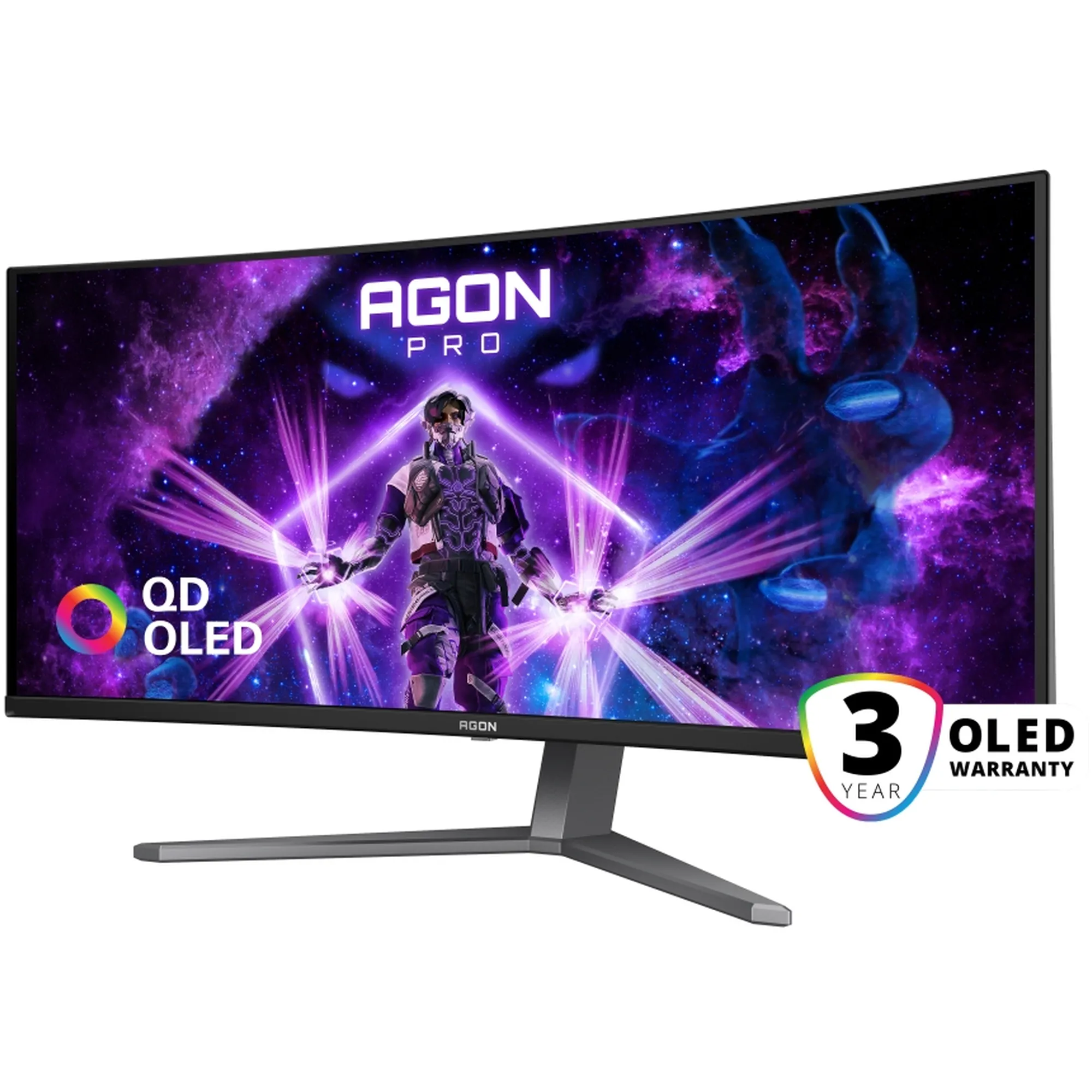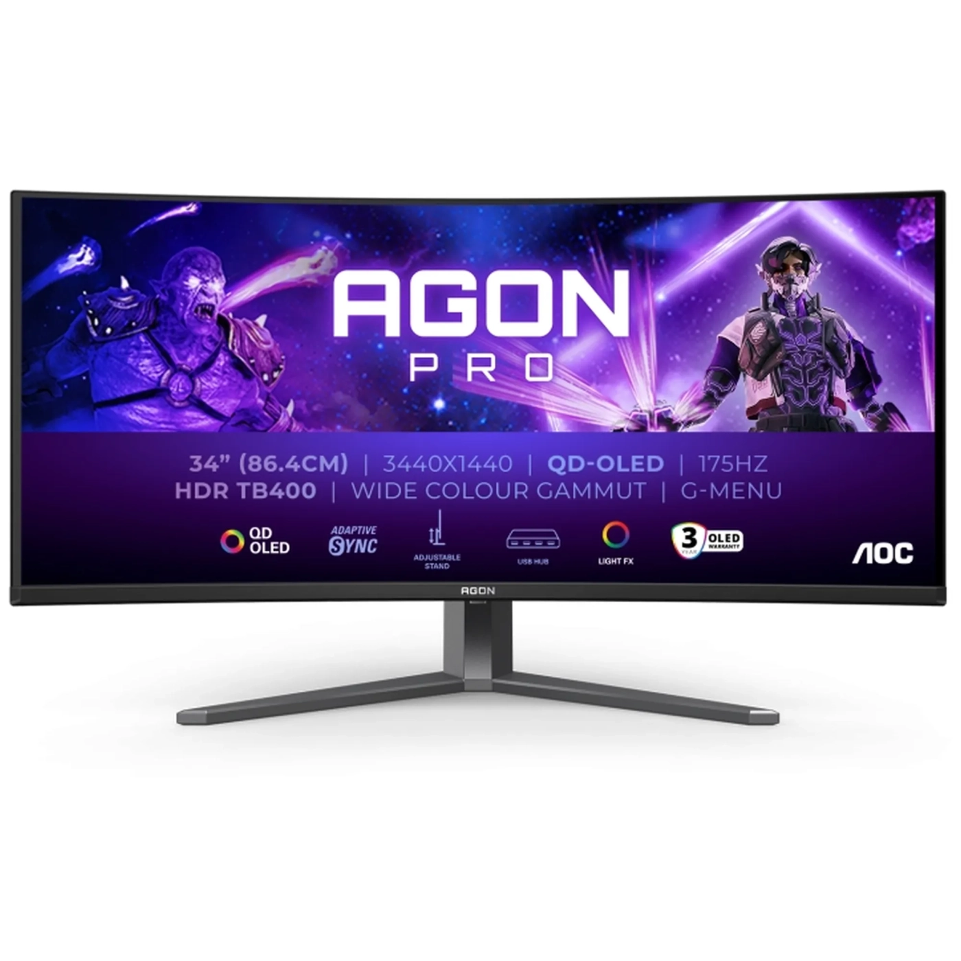 Монитор 34" AOC Agon Pro AG346UCD – это воплощение технологической мощи и современного дизайна, созданное для тех, кто стремится к максимальным результатам в играх и работе с графикой. Благодаря инновационной матрице QD-OLED, устройство поражает невероятной яркостью, насыщенностью цветов и глубиной черного, которые превосходят возможности традиционных экранов. Разрешение WQHD 3440x1440 пикселей открывает новые горизонты детализации, а изогнутый радиус 1800R буквально погружает в виртуальный мир, даря ощущение полного присутствия на поле битвы или за рабочим столом.