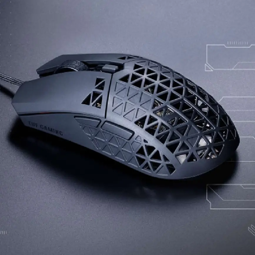 Игровая мышь TUF Gaming M4 Air весит всего 47 г благодаря инновационному корпусу Air Shell. Его верхняя часть выполнена в виде прочной структуры из полых треугольников, что обеспечивает одновременно лёгкость и надёжность конструкции
