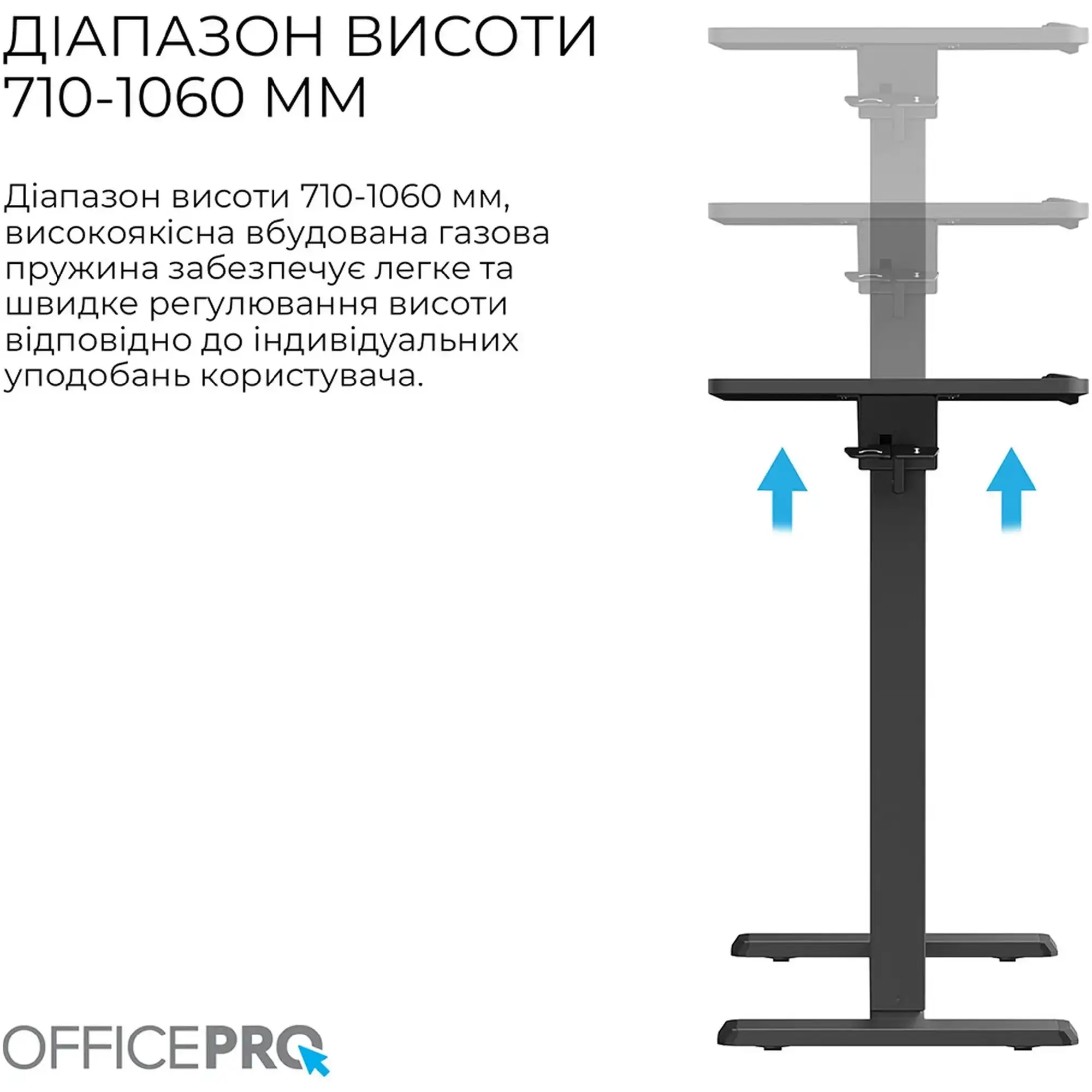Механическая регулировка высоты в диапазоне 710–1060 мм помогает быстро изменить рабочее положение, адаптируя стол под индивидуальные предпочтения пользователя. Такой функционал способствует снижению нагрузки на позвоночник и помогает поддерживать правильную осанку при длительной работе. Возможность чередовать положения сидя и стоя делает OfficePro ODM320B незаменимым помощником для тех, кто стремится к более здоровому и продуктивному рабочему процессу.