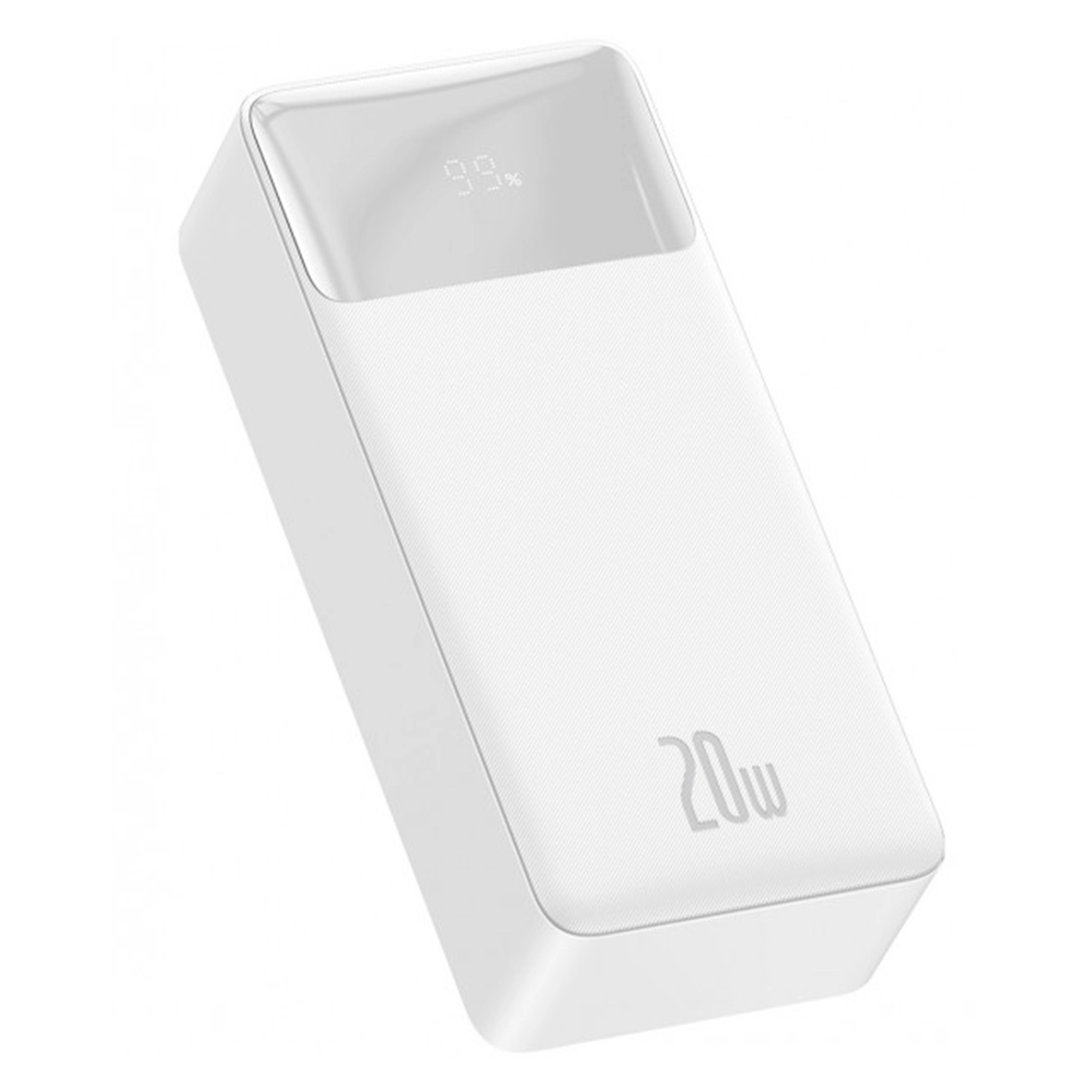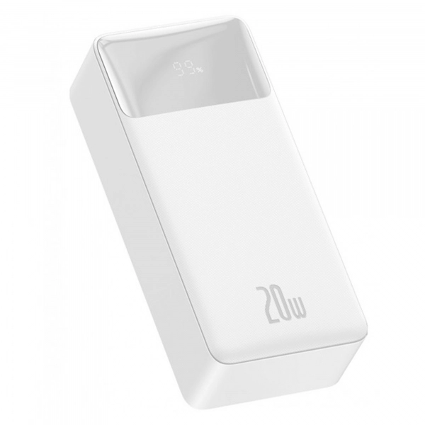 Baseus Bipow Digital Display Power bank 30000 mAh 20W White – современный емкий павербанк с информативным дисплеем, большим количеством разъемов и поддержкой различных технологий быстрой зарядки. Такой павербанк отлично подойдет для повседневно использования благодаря наличию различных интерфейсов, поддержке быстрой зарядки и компактному размеру.