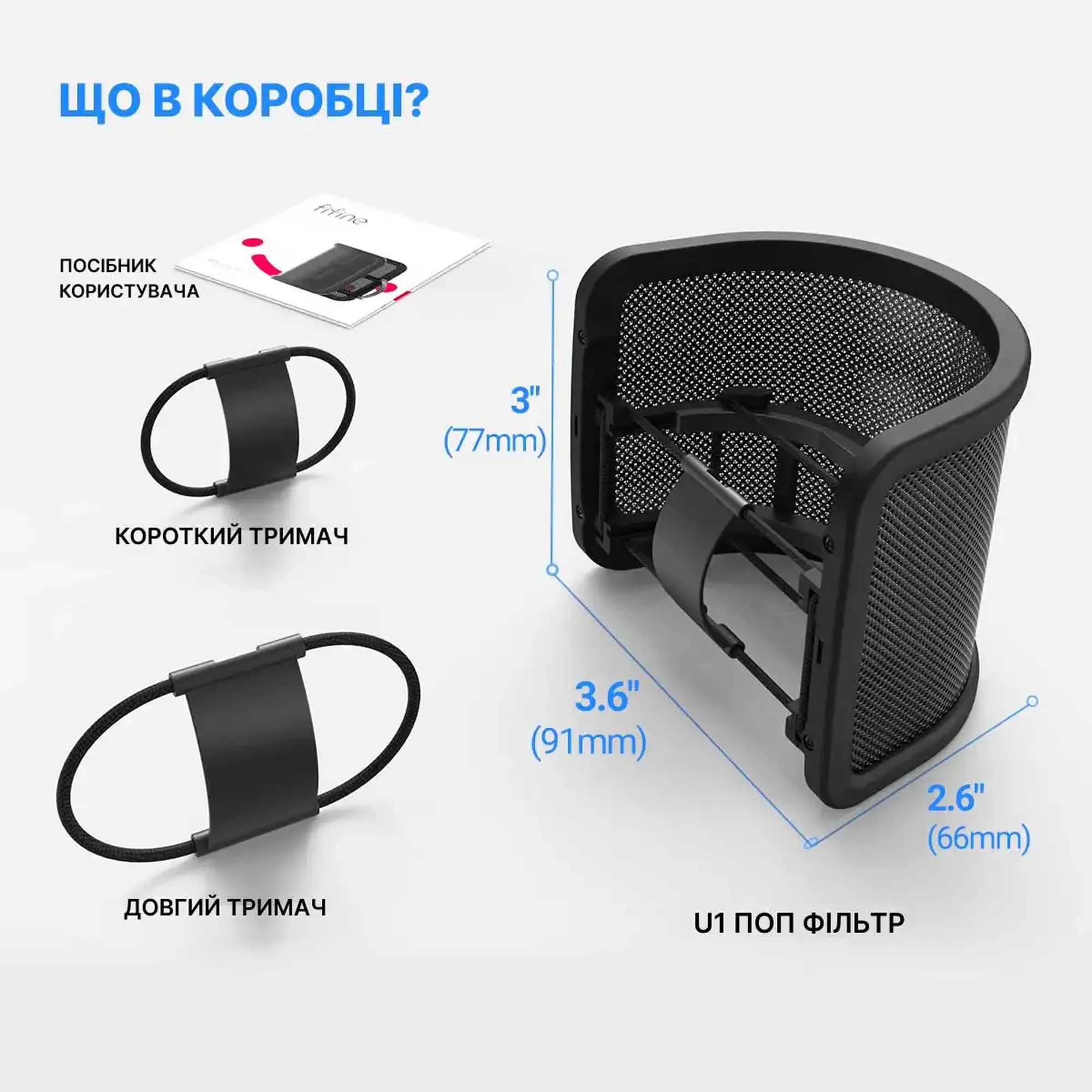 Поп-фильтр Fifine U1 Black не только функционален, но и удобен в использовании. Он комплектуется коротким и длинным держателем, что позволяет легко настроить его положение в зависимости от ваших предпочтений и условий записи. Гибкие резиновые держатели обеспечивают надежное крепление на микрофоне, что исключает риск соскальзывания или перемещения во время работы. Это делает процесс записи более комфортным и концентрированным на творческом процессе. Цена на этот поп-фильтр в интернет-магазине Artline приятно удивит своей доступностью, что делает его отличным выбором для всех, кто ценит качество и комфорт.