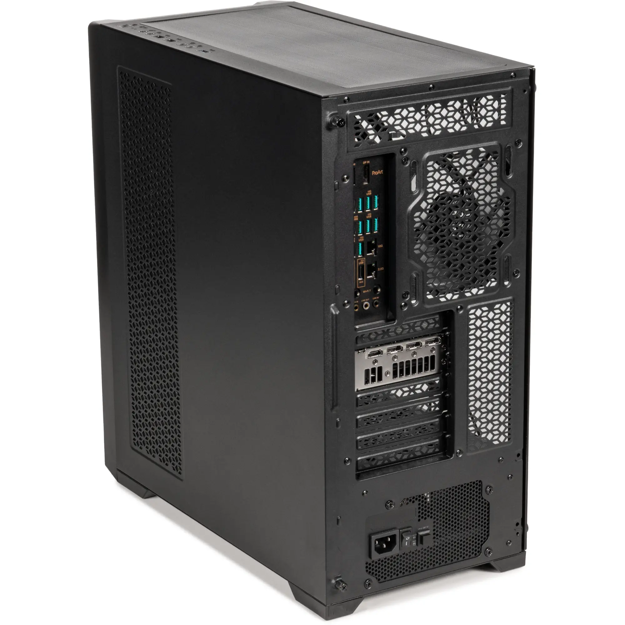 Рабочая станция заключена в стильный корпус QUBE ARGON WS с оптимизированной системой охлаждения: 3 фронтальных вентилятора 140 мм, один тыльный и два верхних для водяного контура. Такое решение гарантирует стабильный температурный режим и долговечность компонентов. Блок питания мощностью 850W с сертификацией 80+ Gold обеспечивает высокий уровень энергоэффективности и надежности.