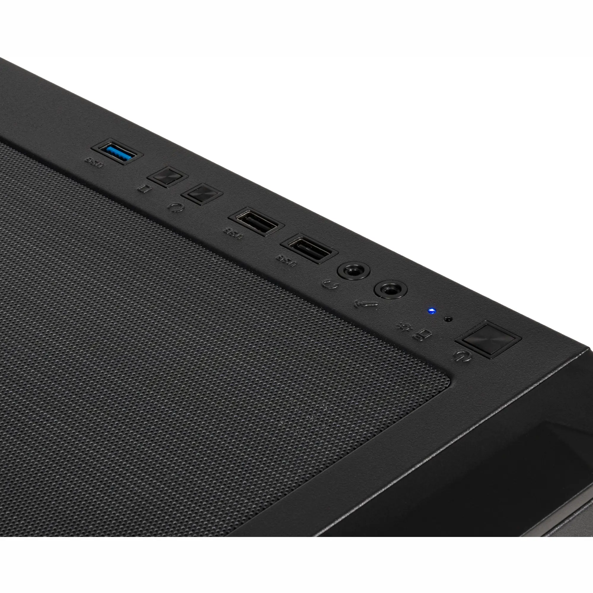 - 3x140mm Black fans (Front) + 1x140mm Black fan (Rear) + 2x120mm Black fans (Top for cooling system)
