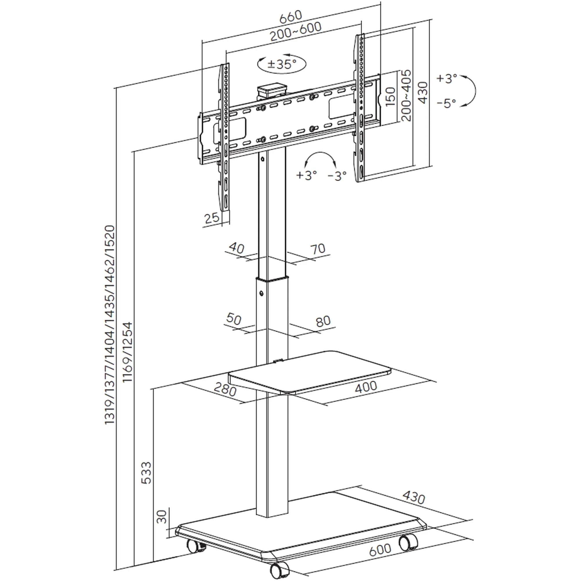 Стойка с креплением для телевизора OfficePro TVS302B 37"-75" Black — это надежное и продуманное решение для установки телевизоров и дисплеев больших диагоналей. Благодаря универсальной конструкции и прочным материалам оно обеспечивает надежную фиксацию техники весом до 50 кг, сохраняя при этом эстетичный внешний вид интерьера. Модель разработана с учётом современных требований к эргономике, что делает её отличным выбором как для дома, так и для офисных пространств или конференц-залов.