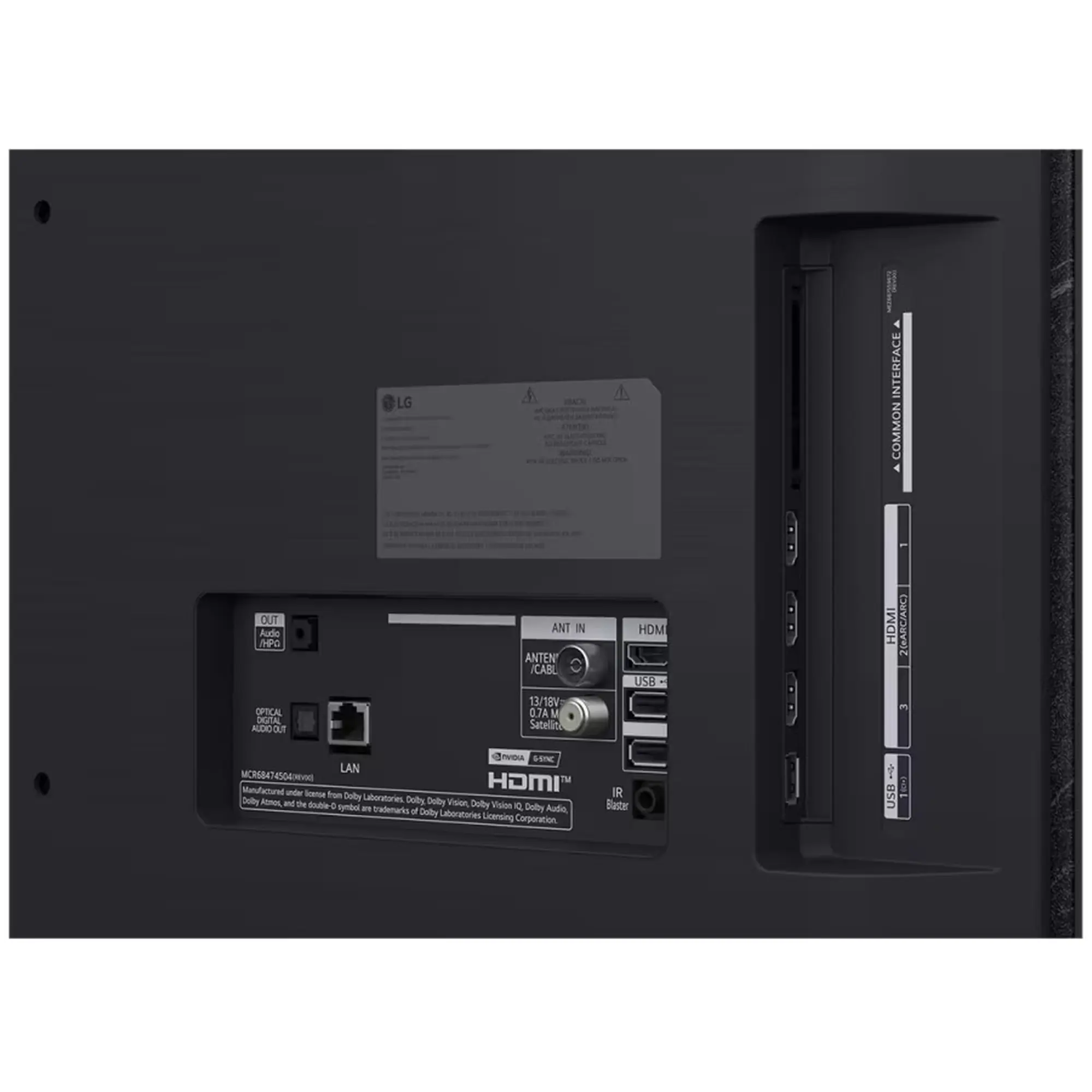 Телевизор поддерживает 100 % передачу цвета и 100 % объём цвета, что даёт реалистичную цветовую палитру. Поддерживаются форматы HDR10, Dolby Vision, HLG и Dynamic Tone Mapping Pro, а также режимы Filmmaker Mode и игровые функции: ALLM, VRR, FreeSync Premium, G-Sync. Время отклика матрицы около 0,1 мс, что делает движение максимально плавным. Аудиосистема мощностью 40 Вт с AI Sound Pro обеспечивает объёмный звук. Есть встроенные тюнеры DVB-T/T2, DVB-C, DVB-S/S2, 4 порта HDMI, 3 USB, поддержка Bluetooth и Wi-Fi, а также операционная система webOS 25 с поддержкой голосового управления.