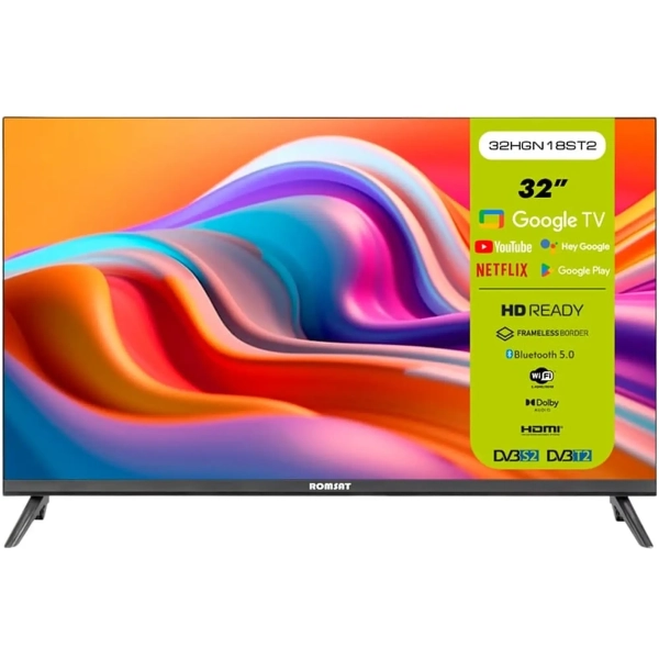 Romsat 32HGN18ST2 работает на базе Android TV, открывая доступ к привычной экосистеме приложений и онлайн-сервисов. Smart TV-функциональность позволяет удобно пользоваться популярными платформами для просмотра видео, музыки и другого цифрового контента. Благодаря встроенному Wi-Fi с поддержкой диапазонов 2.4 ГГц и 5 ГГц телевизор легко подключается к сети, а Bluetooth 5.0 расширяет возможности беспроводного взаимодействия с совместимыми устройствами.