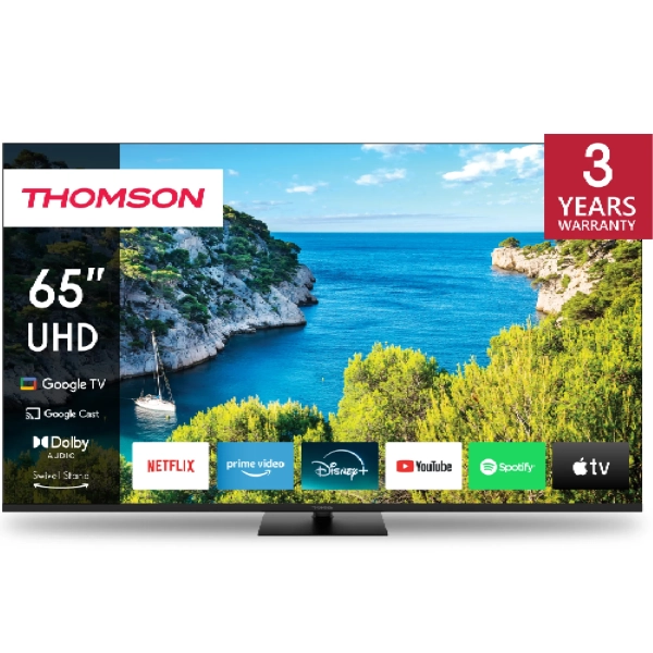 Телевизор THOMSON 65UG5C14 — это впечатляющее сочетание размера, качества изображения и интеллектуального функционала. С диагональю 65 дюймов, разрешением 4K Ultra HD и поддержкой HDR10, этот LED-телевизор обеспечивает великолепную чёткость, контраст и насыщенность картинки, превращая каждый просмотр в кинематографическое событие. А благодаря системе Google TV, он становится настоящим мультимедийным центром вашего дома.