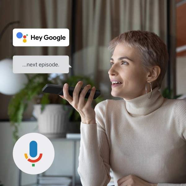 Поддержка Google Assistant и голосового управления открывает новые уровни комфорта: включайте каналы, находите фильмы или запускайте музыку просто с помощью голоса.