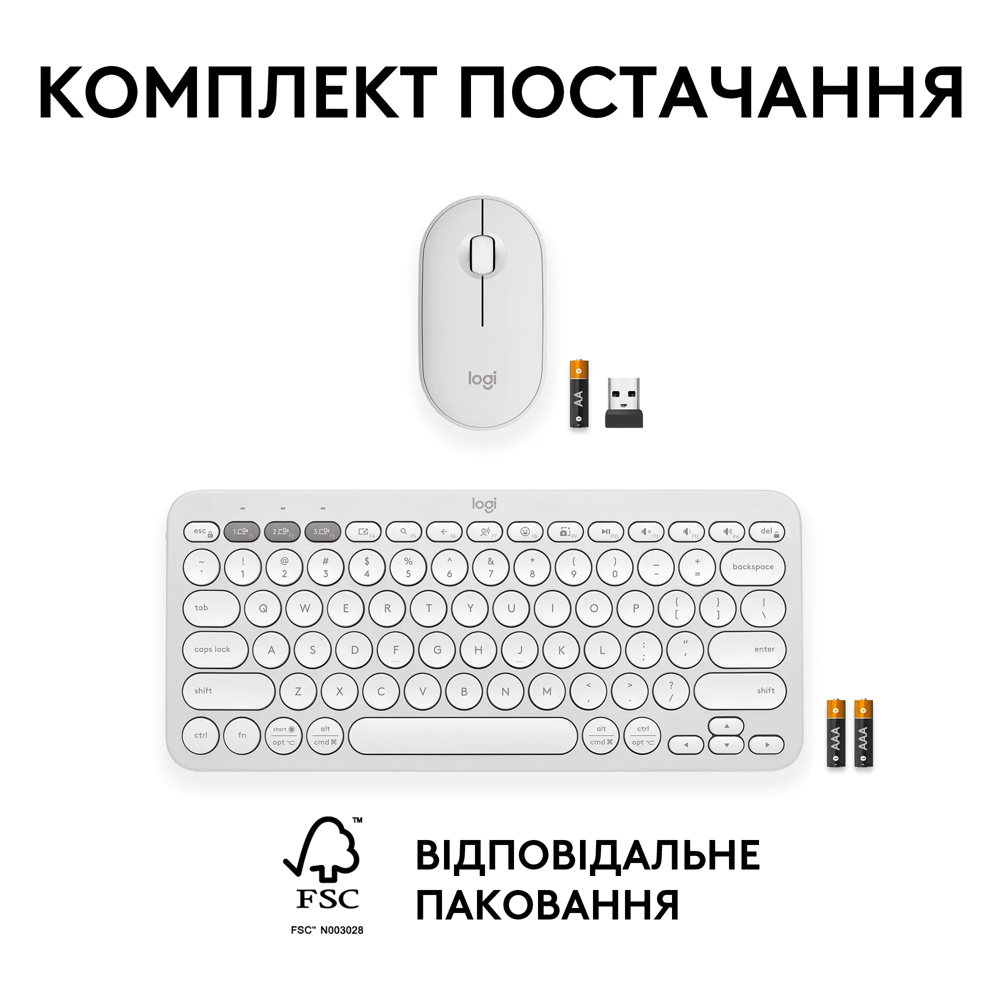 Уценка комплект клавиатура и мышь Logitech Pebble 2 Combo White US 2.4GHZ/BT (2336SCV04409)