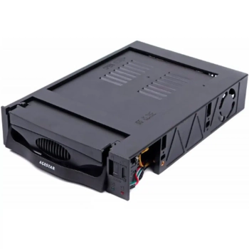 Подключение накопителя происходит через интерфейс Serial ATA, что обеспечивает совместимость с современными материнскими платами и стабильную передачу данных. Механизм фиксации Power-Lock надежно удерживает диск внутри кармана, предотвращая его смещение при вибрациях или переноске системного блока. Это повышает общий уровень надежности и уменьшает риск повреждения разъёмов и кабелей.