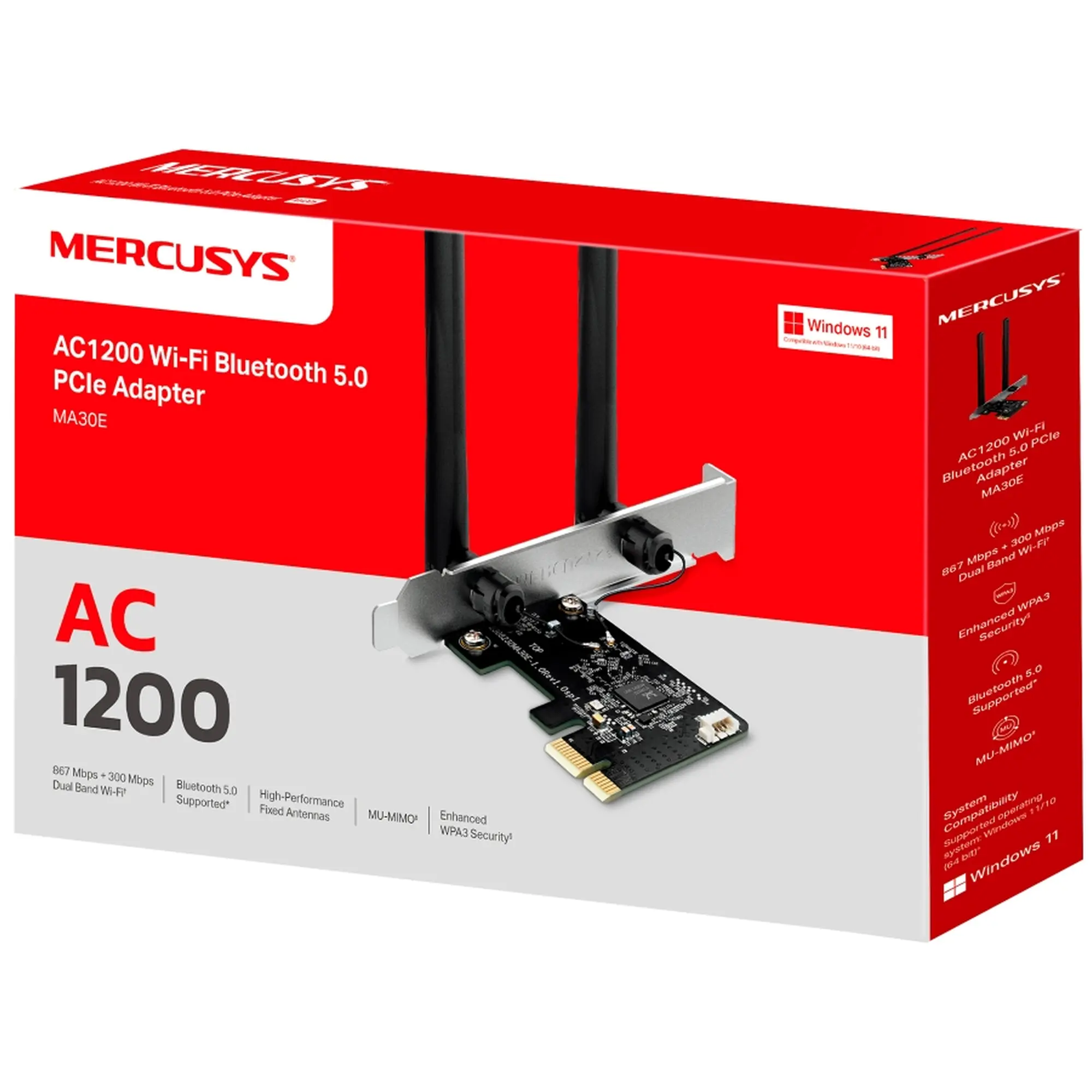 Mercusys AC1200 (MA30E) — это универсальное решение для тех, кто хочет оснастить свой компьютер современными технологиями Wi-Fi и Bluetooth. Он сочетает высокую производительность, стабильность и простоту в использовании, обеспечивая надёжную связь для повседневных задач и мультимедийных развлечений.