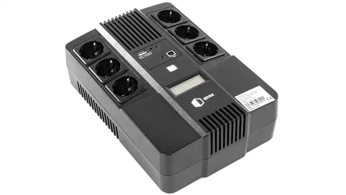 Qube DG 1050 поєднує високу потужність із розширеним набором інтерфейсів. Підтримка чотирьох розеток дозволяє підключати одразу кілька пристроїв, а наявність LCD-панелі допомагає стежити за станом батареї та рівнем навантаження. Вбудоване мікропроцесорне керування та функція холодного старту роблять його ефективним у випадках повного відключення живлення.
