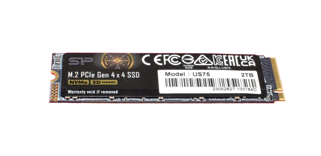 Silicon Power US75 – це доступний і високопродуктивний SSD, який підходить для використання в ноутбуках, десктопах та PlayStation 5. Він оснащений інтерфейсом PCIe 4.0 та використовує контролер Maxio MAP1602, що дозволяє досягати швидкості послідовного читання до 7000 МБ/с та запису до 6500 МБ с. SSD доступний у різних ємностях, включаючи 500 ГБ, 1 ТБ, 2 ТБ та 4 ТБ. Драйв не має DRAM-пам'яті, але використовує технологію HMB (Host Memory Buffer), що дозволяє зберігати гідну продуктивність. Ендюранс складає до 2400 ТБW для версії 4 ТБ, що є стандартом для такого типу SSD. Як флеш-пам'ять використовується 232-шарова TLC від YMTC, яка демонструє хороші результати у швидкості та довговічності. Однак, незважаючи на наявність теплового розсіювача, для тривалих навантажень рекомендується використовувати ефективніші системи охолодження. В цілому, це гарний вибір для людей, які шукають надійний та швидкий SSD для ігор та повсякденних завдань.
