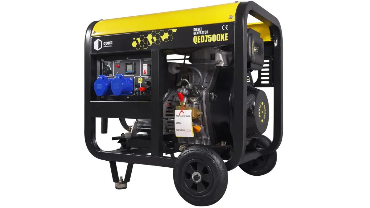 Qube QED7500XE – дизельний, з номінальною потужністю 5,0 кВт і максимальною 5,5 кВт. Працює при 220 В, бак – 12,5 л. Запуск електричний. Рівень шуму 72 - 77 дБ, вага 138 кг. Оснащений потужним двигуном CF188FA, AVR-регуляцією та захистом від низького тиску масла.