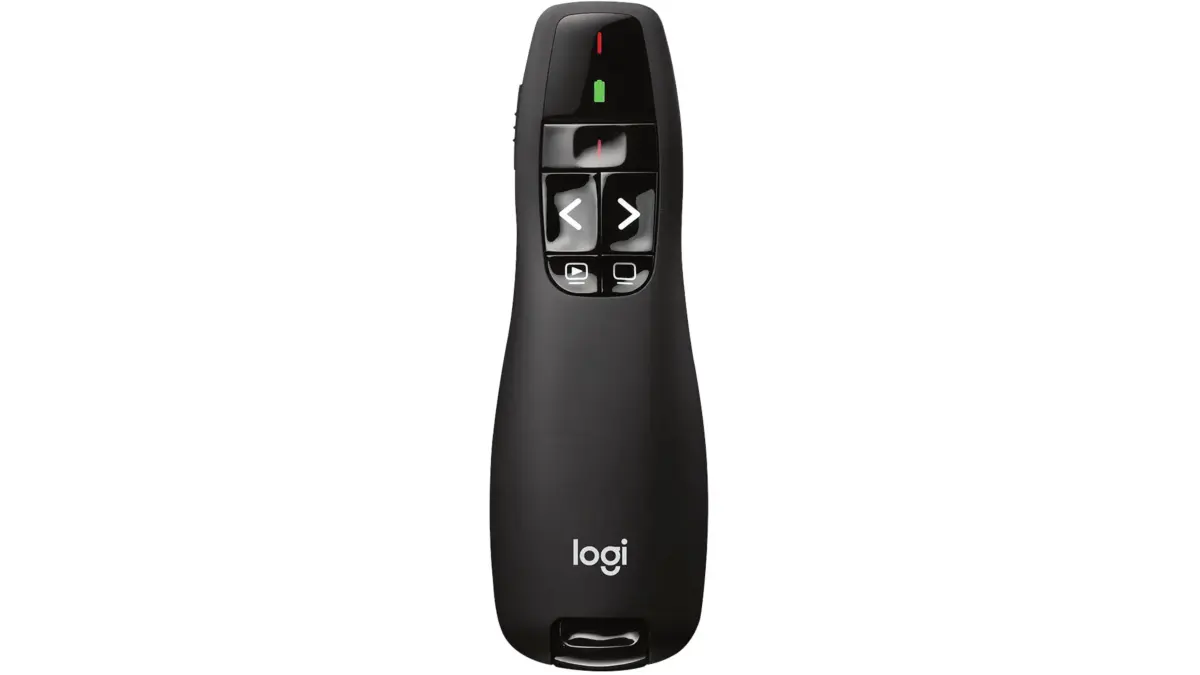 Logitech R400 орієнтований на класичні завдання, де важливі передбачуваність і простота. Його радіодіапазон підходить для переговорних кімнат і лекційних залів. Лазер другого класу має яскраве червоне світіння, а кнопки володіють тактильною віддачею, що зменшує кількість випадкових натискань. Пристрій працює від двох батарейок AAA і здатний функціонувати тривалий час без заміни живлення.