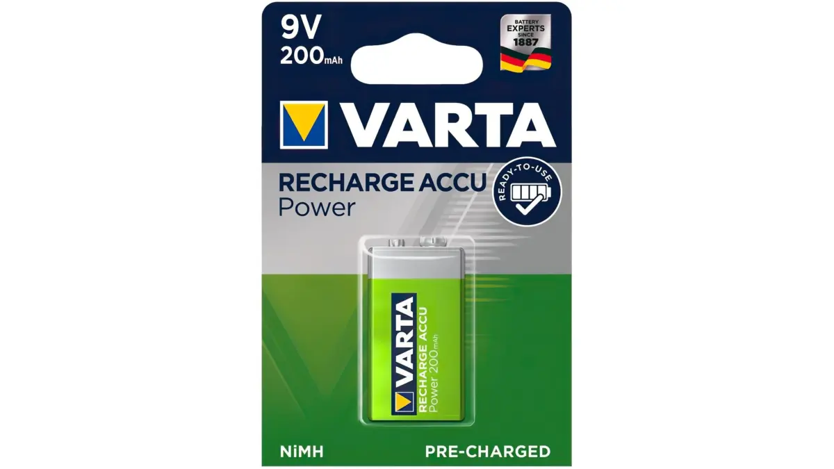 VARTA Power Accu 6F22 9V 200mAh. Цей акумулятор підходить для користувачів, яким важливе регулярне використання без постійної купівлі одноразових елементів. Він витримує сотні циклів заряджання, має низький рівень саморозрядження і зберігає заряд навіть після двох років зберігання. Відмінний вибір для пристроїв із високим енергоспоживанням.