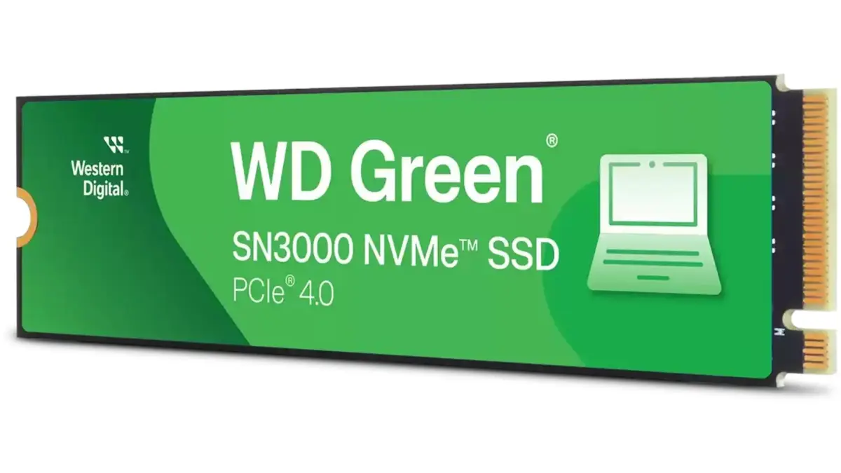 WD Green SN3000 орієнтований на сучасні системи з PCIe 4.0. Він демонструє високі швидкості та мінімальні затримки, що робить його актуальним вибором для робочих конфігурацій 2026 року. При цьому використовується QLC-пам’ять, що підкреслює тренд на оптимізацію вартості без втрати повсякденної чутливості системи.