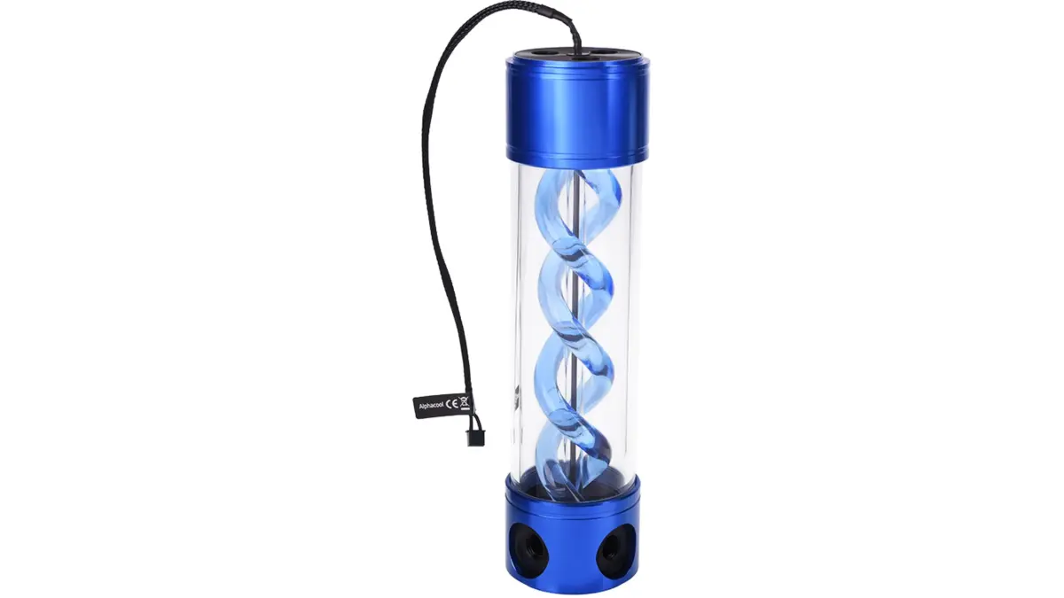 Alphacool Eisbecher Helix 250mm виділяється збільшеним об’ємом 340 мл і висотою 250 мм. Центральна спіраль формує спрямований потік і посилює візуальний ефект при роботі ARGB-підсвітки. Модель підходить для корпусів середнього та великого формату, де є місце для вертикального монтажу.