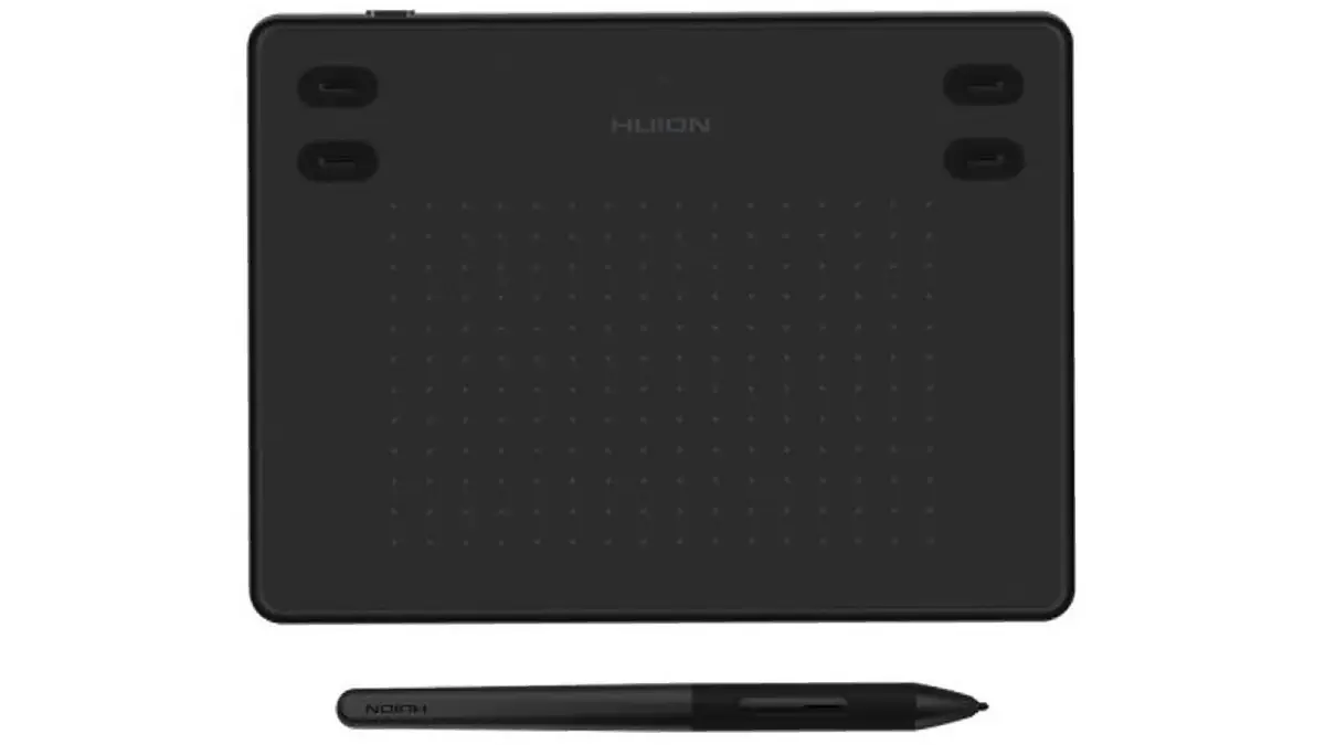 Huion Inspiroy H430P – легкий планшет з пером без батареї, що забезпечує природне відчуття під час малювання. Чотири експрес-клавіші прискорюють роботу, а точність ліній дозволяє виконувати навіть детальні ескізи.