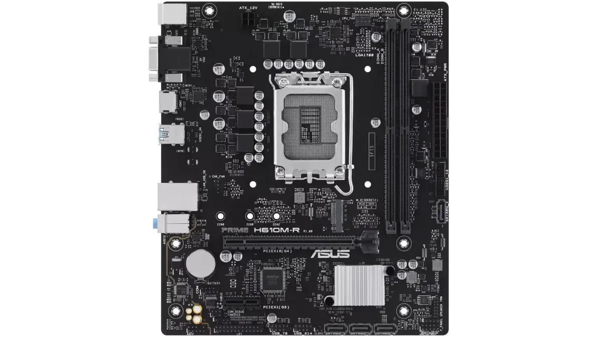 ASUS PRIME H610M-R-SI – універсальна материнська плата для Intel LGA1700. Підтримка DDR5 до 96 ГБ, слот M.2, відеовиходи HDMI, DVI-D, D-Sub. Технології LANGuard, SafeSlot Core і DIGI+ VRM забезпечують надійність і стійкість до зовнішніх впливів.