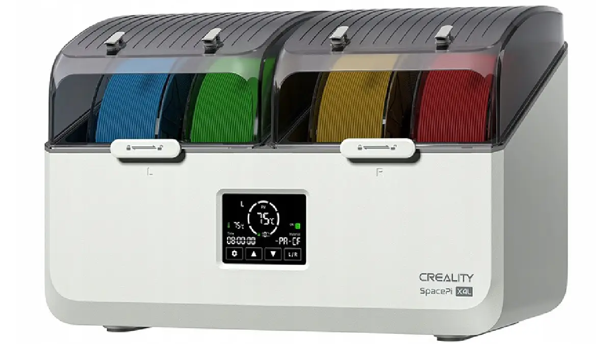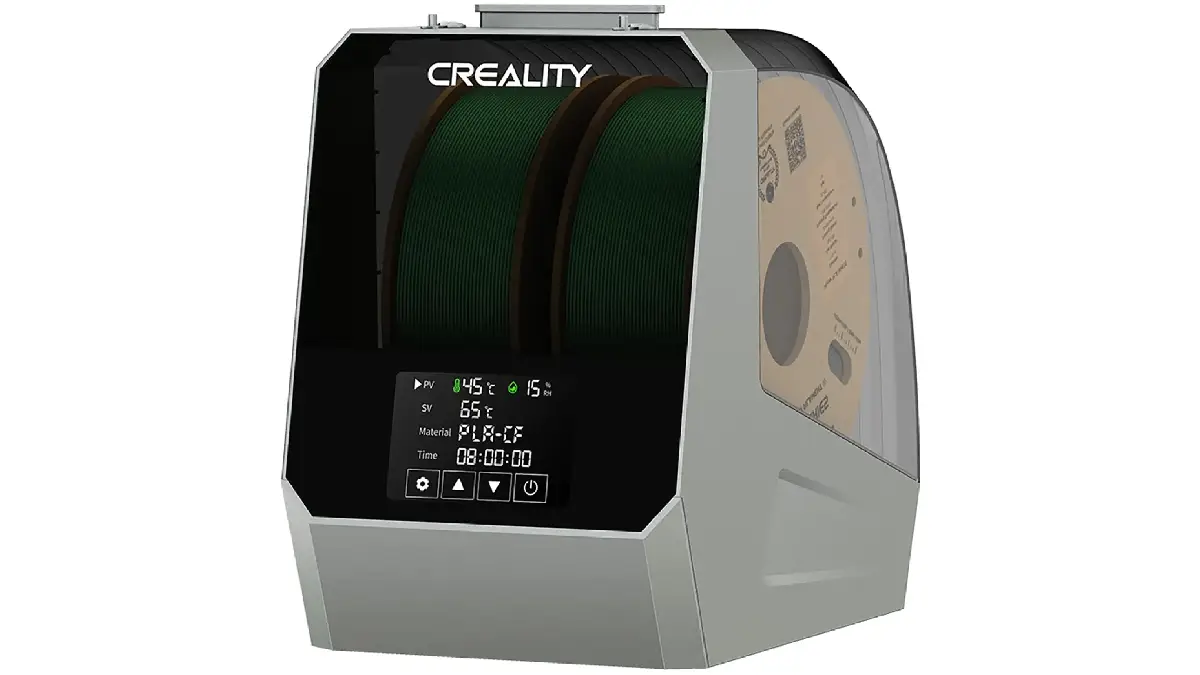 - Система контролю: Активна система терморегуляції запобігає локальному перегріву пластику, забезпечуючи ідентичні умови сушіння для всіх встановлених котушок. Це робить пристрій незамінним під час багатоколірного друку або використання розчинних підтримок.