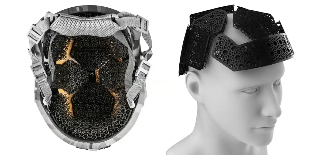 На території США на внутрішньому ринку вже понад рік пропонується система набивання шолома Hard Head Veterans. Її особливість полягає в наявності ґратчастого набивання з карбону, який створений на 3D-принтері. За результатами експериментів стало зрозуміло, що подушечки для шоломів Micro Lattice (призначені для балістичних, тактичних та інших типів шоломів) здатні зменшити рівень деформації задньої поверхні до 66% краще, ніж це роблять стандартні подушечки.
