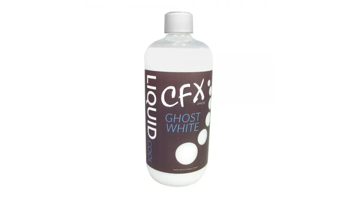 | Liquid.cool CFX Pre Mix Opaque Ghost White 1000ml | Готова | Біла | до 60 °C | <10 µS/см | Мідь, латунь, алюміній | Нетоксичний склад, стабільний пігмент |