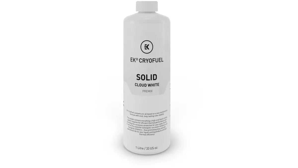 EKWB EK-CryoFuel Solid Cloud White – універсальний варіант для світлих збірок. Низька в’язкість полегшує роботу помпи, а хімічна нейтральність знижує ризик утворення осаду. Рідина для системи водяного охолодження ПК такого типу добре підходить для довгострокових проєктів.