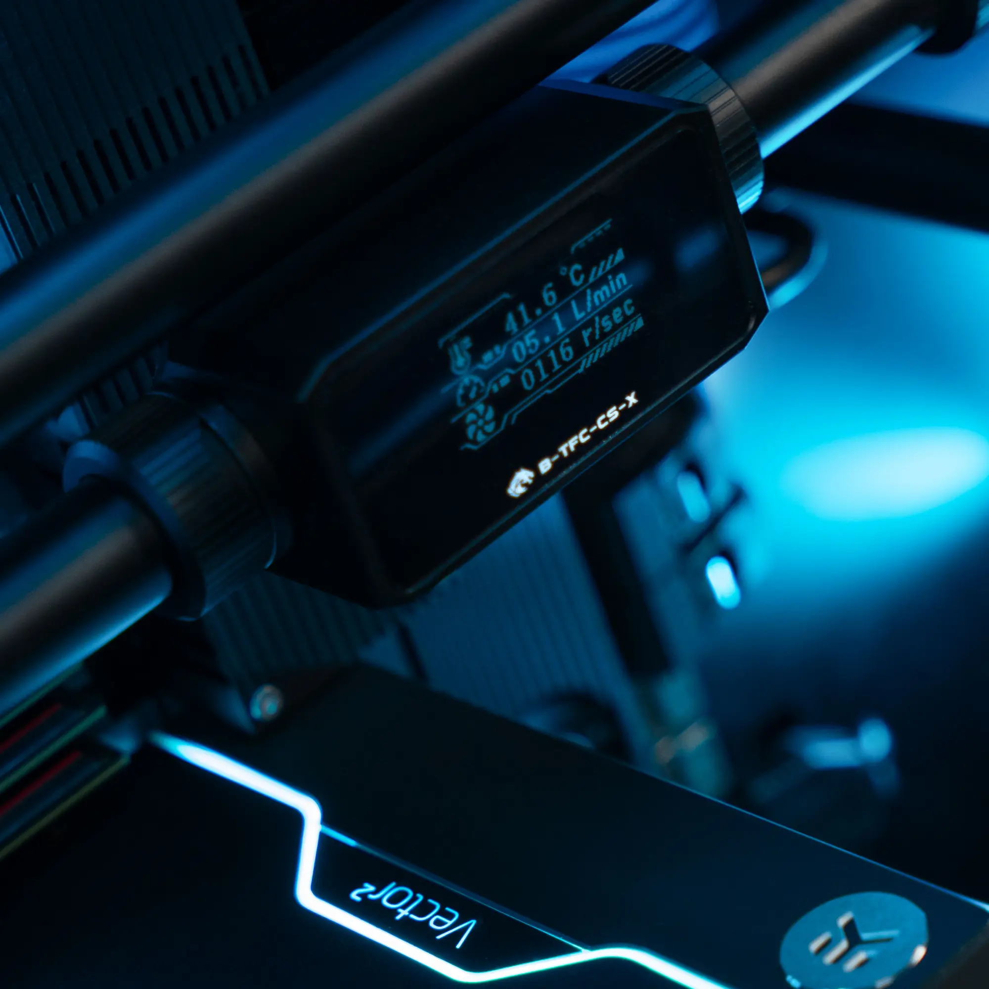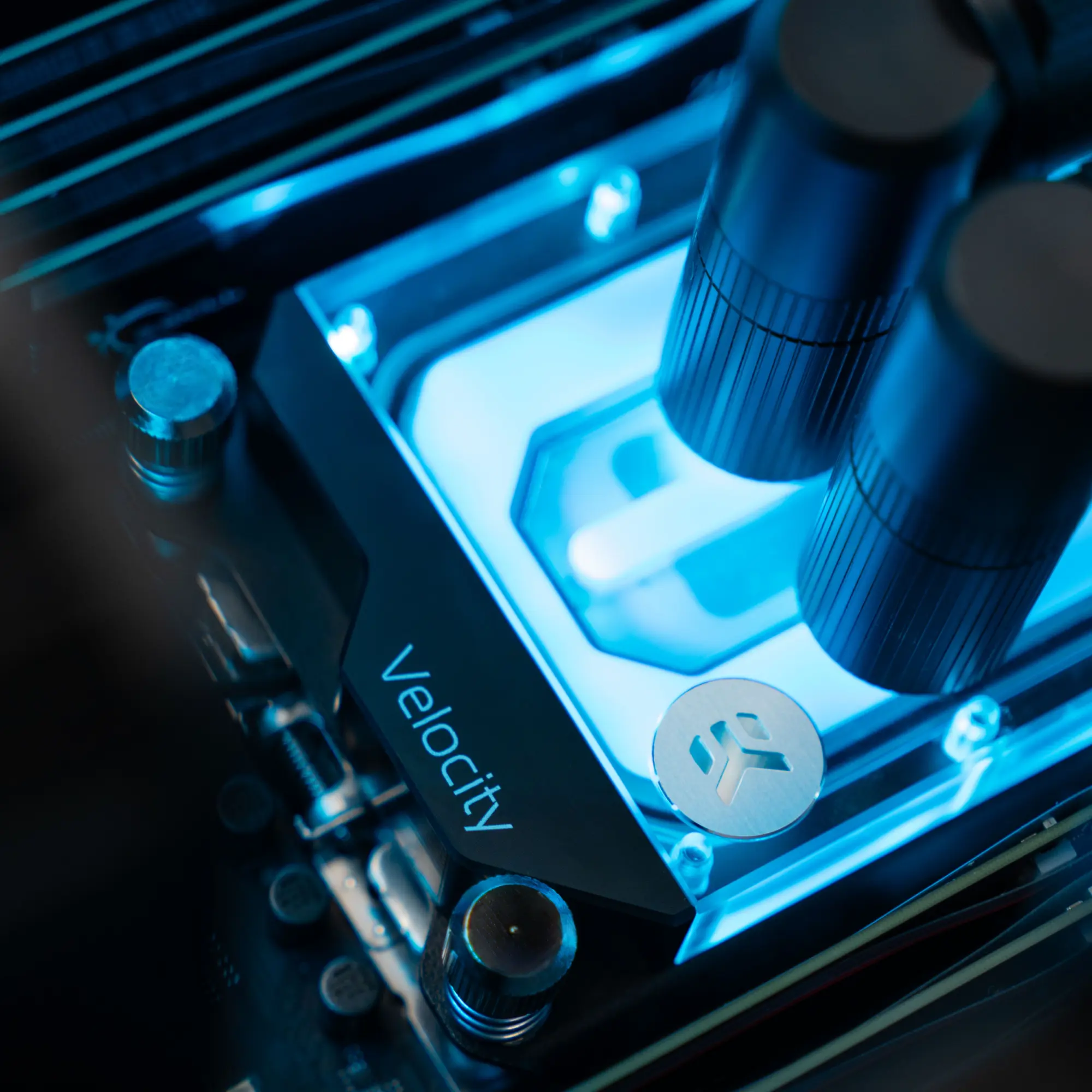 Передня панель доповнена рядом RGB-вентиляторів з м'яким рівномірним світінням, а бічна частина відкриває вид на ідеально організований внутрішній простір. Акуратне укладання кабелів в кольоровій оплетці і кастомна система охолодження роблять інтер'єр корпусу настільки ж вражаючим, як і його зовнішня частина.