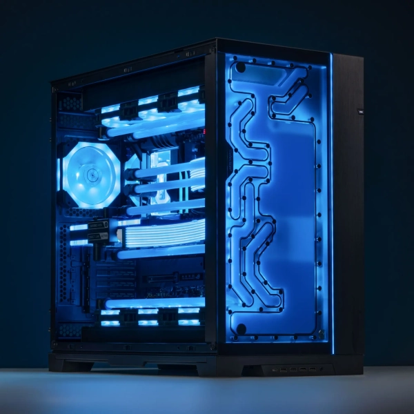 Комп'ютер ARTLINE Blue Core Lian Li O11D – це справжній шедевр кастомного ПК-дизайну, створений на базі культового корпусу Lian Li PC-O11 Dynamic EVO XL. Чорний мінімалізм корпусу підкреслений холодним блакитним світінням кастомної рідинної системи охолодження, формуючи образ сучасного кіберпанк-артефакту. Цей комп'ютер виглядає як витвір цифрового мистецтва, а не просто робоча машина.
