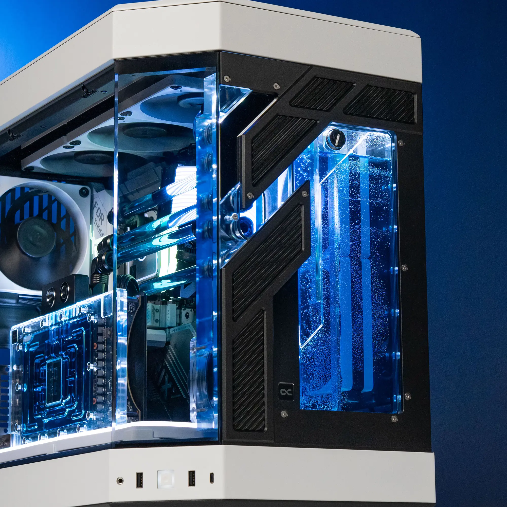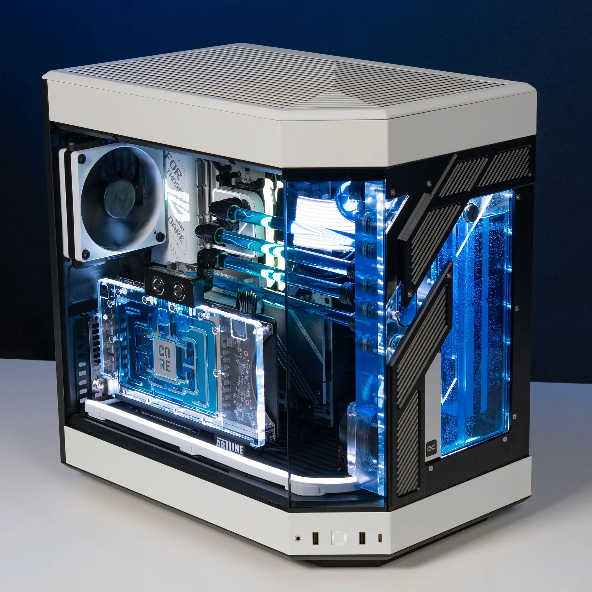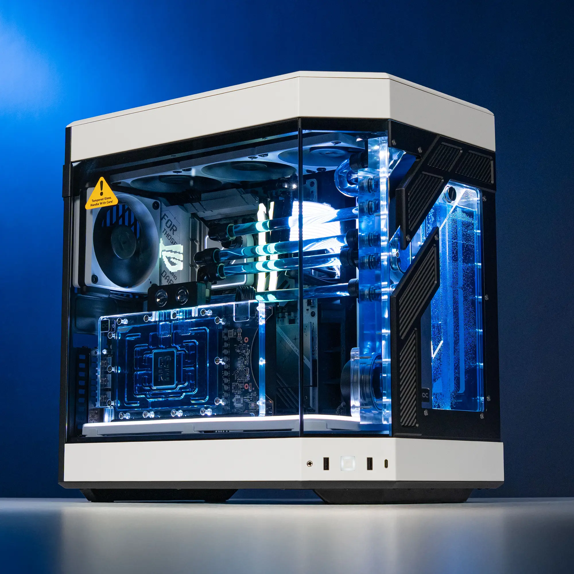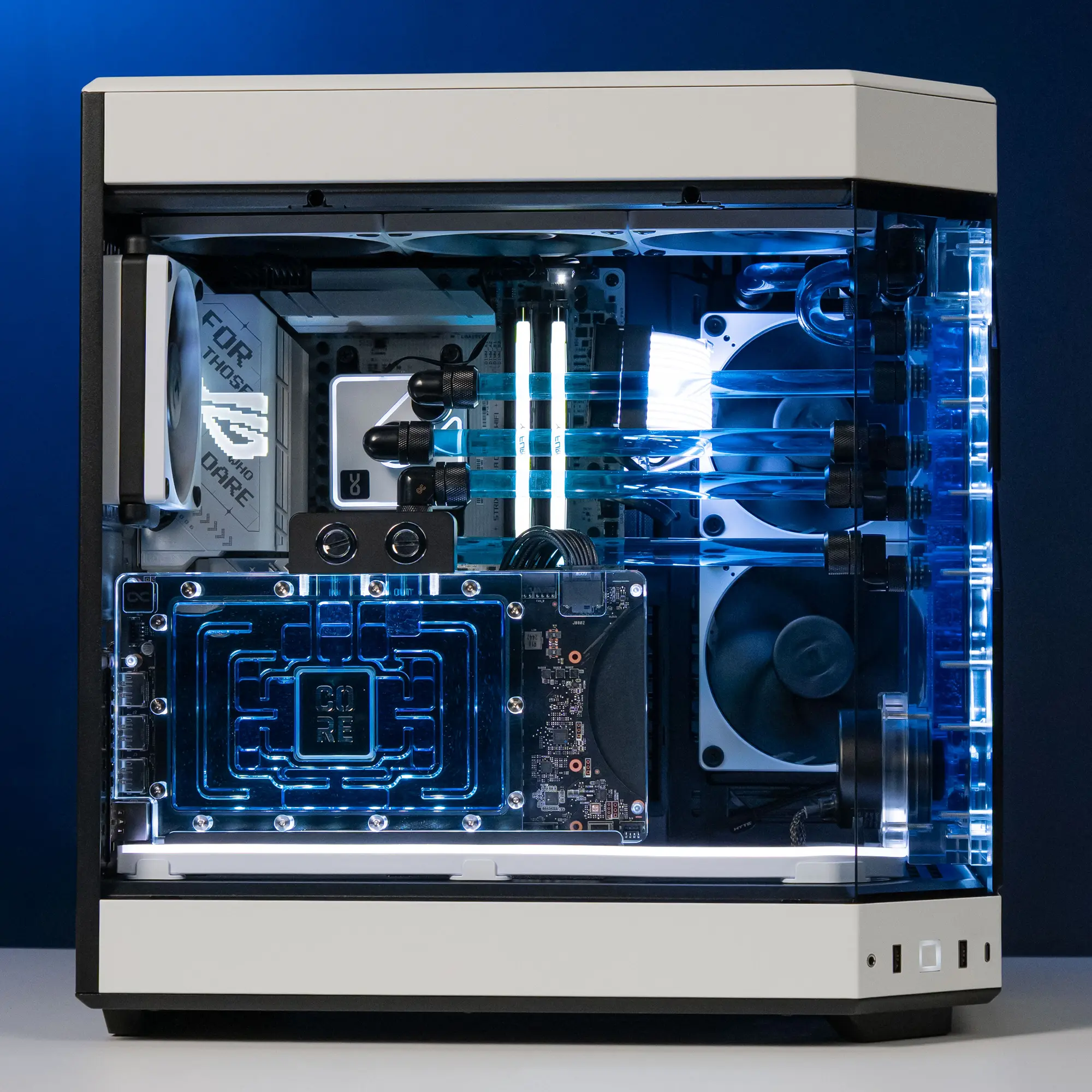 Комп'ютер ARTLINE HYTE Y60 Glacier Core — втілення холодної потужності в культовому корпусі HYTE Y60 формату Middle Tower. Білий корпус, акуратне укладання кабелів і кастомна система рідинного охолодження з рівними горизонтальними трубками створюють ефект технологічної досконалості. Панорамне скло дозволяє розглядати деталі, немов твір сучасного мистецтва.