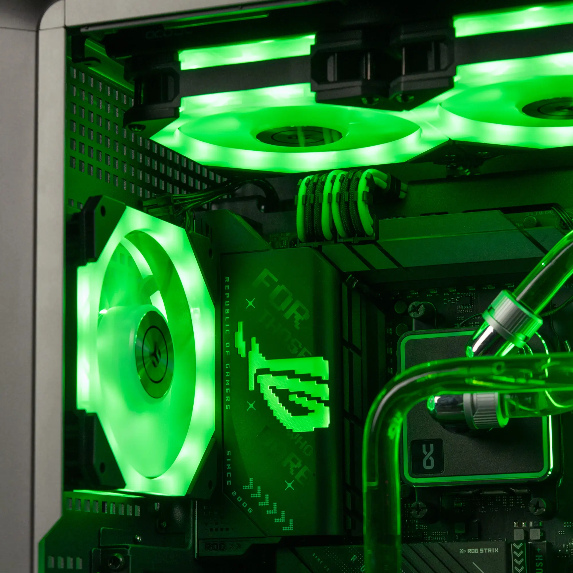 В основі конструкції — кастомна система рідинного охолодження, зібрана вручну майстрами ARTLINE. Вона забезпечує виняткову стабільність і низький рівень шуму навіть при пікових навантаженнях. Все розраховано на довгу, безкомпромісну роботу: якісні фітинги, прозорі акрилові трубки, резервуар з підсвічуванням і ідеально налаштовані контури циркуляції. Тут немає випадкових рішень — тільки точність і естетика.
