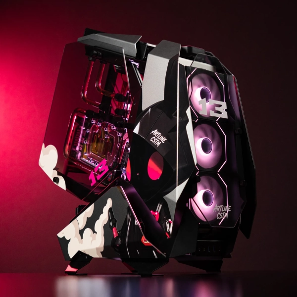 ARTLINE Jonsbo MOD-3 Rose Rabbit є унікальним творінням у світі кастомних ПК, де межі між технологією та мистецтвом стираються. Цей комп'ютер є втіленням агресивного "меха"-дизайну, який зустрічається з ніжною рожевою естетикою, створюючи ефектний візуальний контраст. Корпус виконаний з авіаційного алюмінію і має відкритий тип, що дозволяє не лише милуватися його вмістом, але й забезпечує ефективне екстремальне охолодження. Насичено-рожева рідина, що циркулює по жорстких трубках, ніби життєва артерія, охоплює процесор і відеокарту, надаючи пристрою вигляд кібернетичного кролика з неймовірною потужністю.