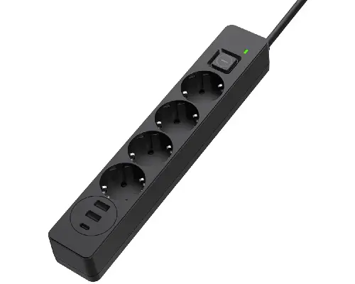 Мережевий фільтр ColorWay 4 розетки + 3 USB (2 USB + USB-C/24W) 5м Black (CW-CHE435PDB)