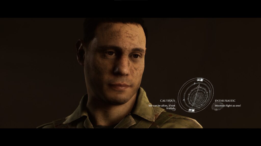 Тут підходимо до важливої штуки – в The Dark Pictures The House of Ashes немає скрімерів. Гра взагалі не використовує дешевих методик. Це доросла хоррор-адвенчура, яку рухають ідеї Кінга та Лавкрафта. Від останнього тут страх невідомого, а від першого – саспенс, що постійно наростає. Навіть незважаючи на те, що монстрів нам показують вже через годину, роблять це майстерно, вправно приховуючи їхні обличчя. Щось атакує людей із темряви і ми не знаємо як з цим боротися.