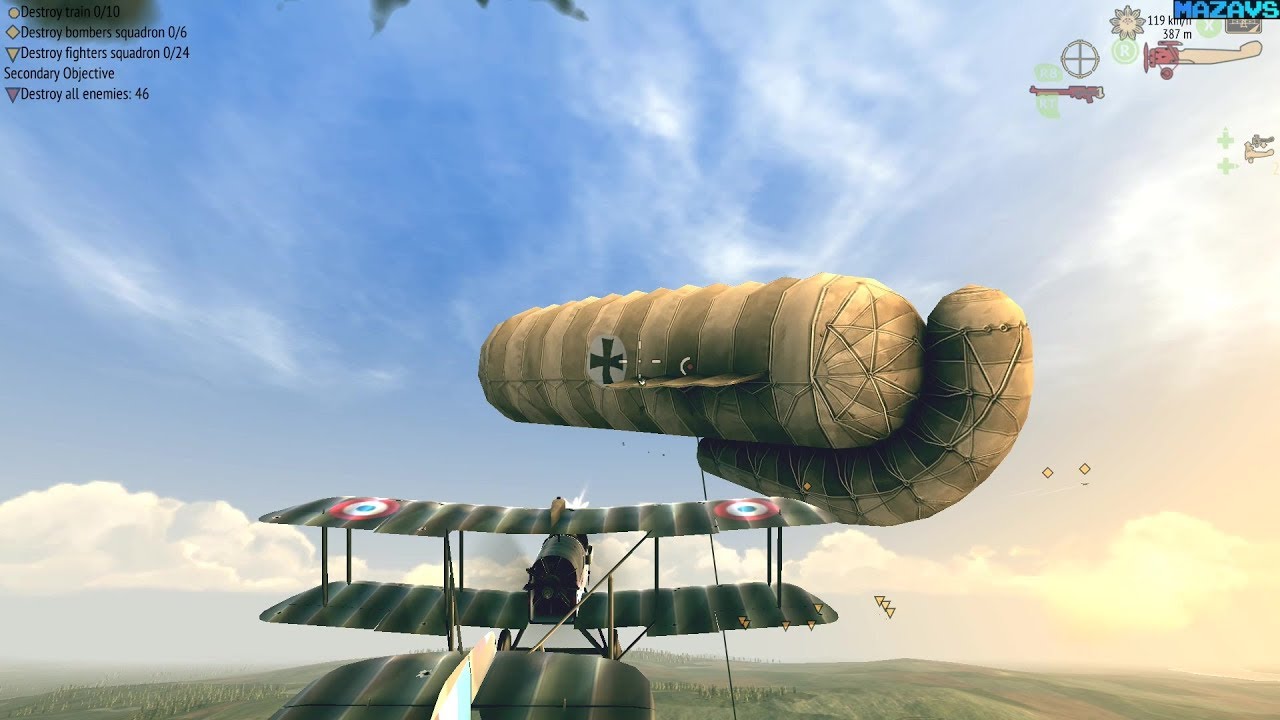 У грі є чотири типи місій, які відрізняються лише знищенням різних типів цілей, а також їх захистом. Генеруються вони випадково, в залежності від сторони, яку ви вибрали (грати можна за Антанту і Троїстий союз). Літаків в грі не так багато, як хотілося б, але їх дизайн, перенесений з реальних прототипів, потішить очі естета. У грі непогано виконана система пошкоджень. Попадання по вас залишають дірки, які можна помітити неозброєним оком. Кожен виліт забезпечує вас внутрішньо ігровою валютою (платня). Витратити її можна на придбання нових літаків, а також на поліпшення їх якостей. Покращення стосуються як озброєння, так і управління. Також літальні апарати можна кастомізувати під власний смак.