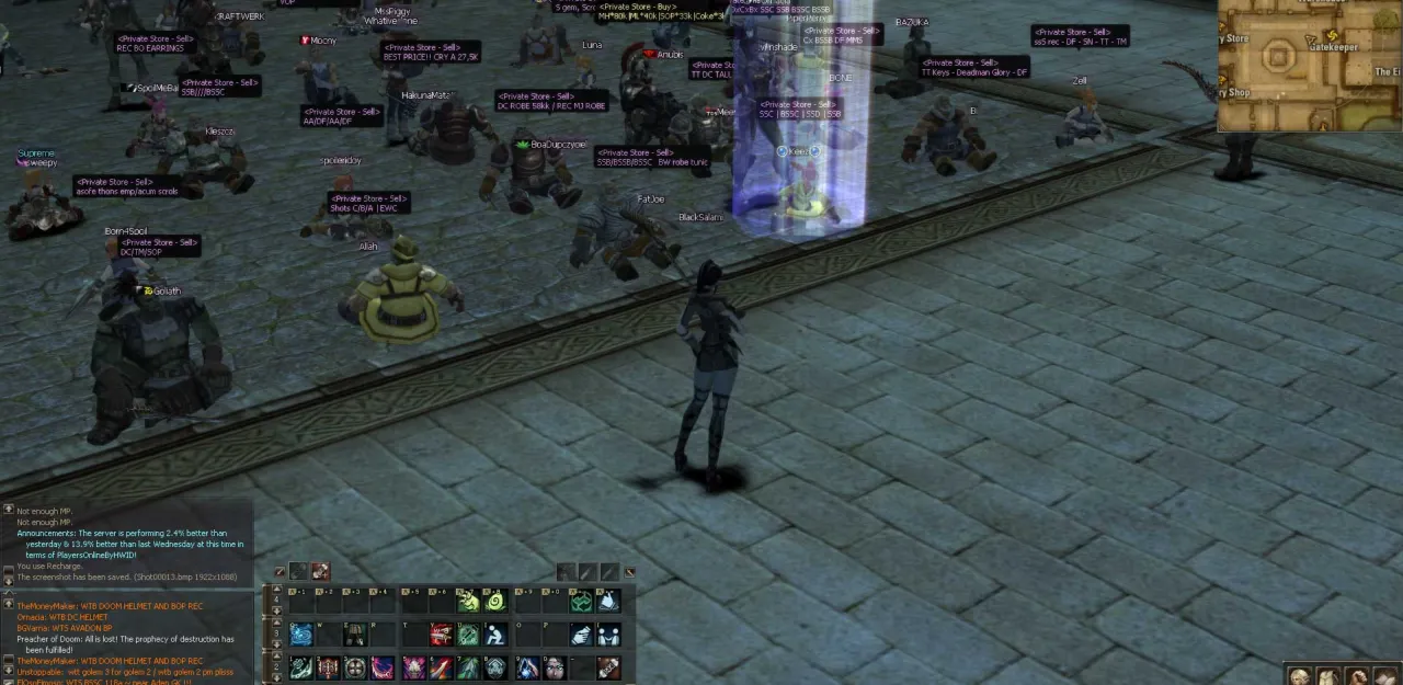 На серверах з низькими рейтами отримати S-грейд шмот було дійсно непросто. Вірніше – потрібно було багацько часу, особливо якщо ти ще не награв свою першу тисячу годин. Якщо сьогоднішні ігри займаються подібними підрахунками, в Л2 тобі просто приходило в чат сповіщення, що ви граєте вже 13 годин, час зробити перерву, бо можна скинути лижі. Ти міг зайти в гру в 9 ранку і вийти з неї в 12 ночі, і це було абсолютно нормально. Якщо ж ти робиш квест на ноблес, в одному з моментів цього довжелезного квесту треба було вдарити Баюма, топ-боса, котрий з’являється раз на три дні. І ніхто не знає КОЛИ САМЕ він з’явиться, а валять його за пару хвилин. Тобто ти міг по 3 дні чекати біля брами, щоб вдарити його і виконати квест, а він міг з’явитись десь в 5 ранку, через що доводилось чекати ще три дні. Забава ставала ще веселішою, коли тебе ПКшив клан варів на самому босі. На щастя цей довжелезний квест треба було виконати лише раз, після чого ти вкачувався до 80-го знову, але вже вкачував нову профу, а потім – третій раз, якщо хотів вкачати ще одну профу. Тобто якщо ти з самого початку обрав клас Тиран на орку, ти міг накинути йому ще + два будь-яких класи на вибір, щоб розширити геймплей і не качати кожен раз нового перса. Нобл давав тобі діадему, якою ти міг понтуватись перед нубами, що просили в тебе бабос в Діоні. Шмот і пушки доповнювались біжею.