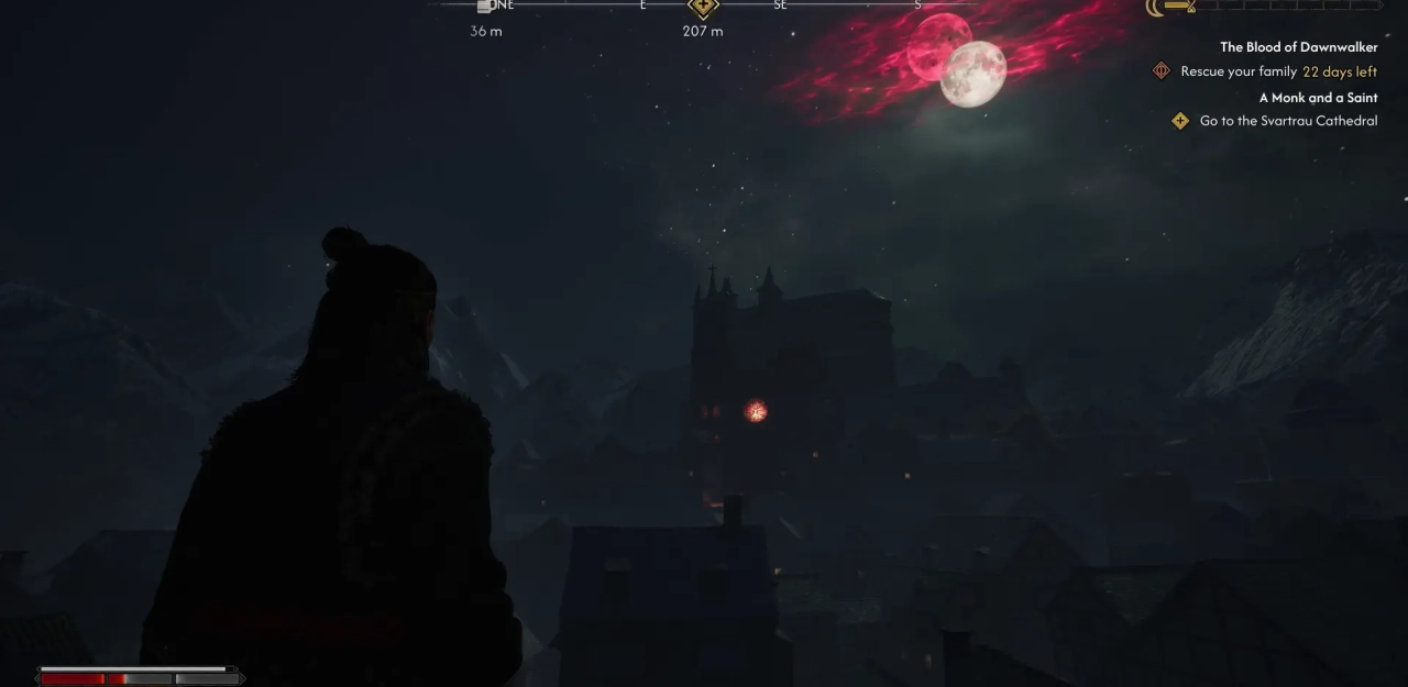 Що ж це за світ, в котрому кровотоком протікають події The Blood of the Dawnwalker? Ми знаходимось в вигаданій Долині Сангора, на дворі 16 сторіччя, лютує епідемія бубонної чуми. Цим вирішили скористатись вампіри, котрі вбивають людських правителів і посідають їхні місця. Покидьки беруть нашу сім’ю в полон, нас роблять денним ходаком і залишають 30 днів та ночей на їх порятунок. Прикол в тому, що фінальну локацію, замок головного вампіра, можна буде штурмувати тоді, коли побажаєш – навіть в першу ніч, от лише закінчиться це не надто вдало. Гра побудована на Карпатських пейзажах, оскільки Сангора за лором знаходиться за два горба далі Гуцульської лісної самогонної спілки. Загалом в грі буде до 5 великих міст, нам показали Сварграу, найбільший населений пункт, котрий просто бере вас в руку і жбурляє прямо в Визіму з першого Відьмака. Ви тільки подивіться на цю красу – чисто рімейк на сучасний манер. Можемо побачити велику кількість різних сценок, які розігруються навколо неписями.