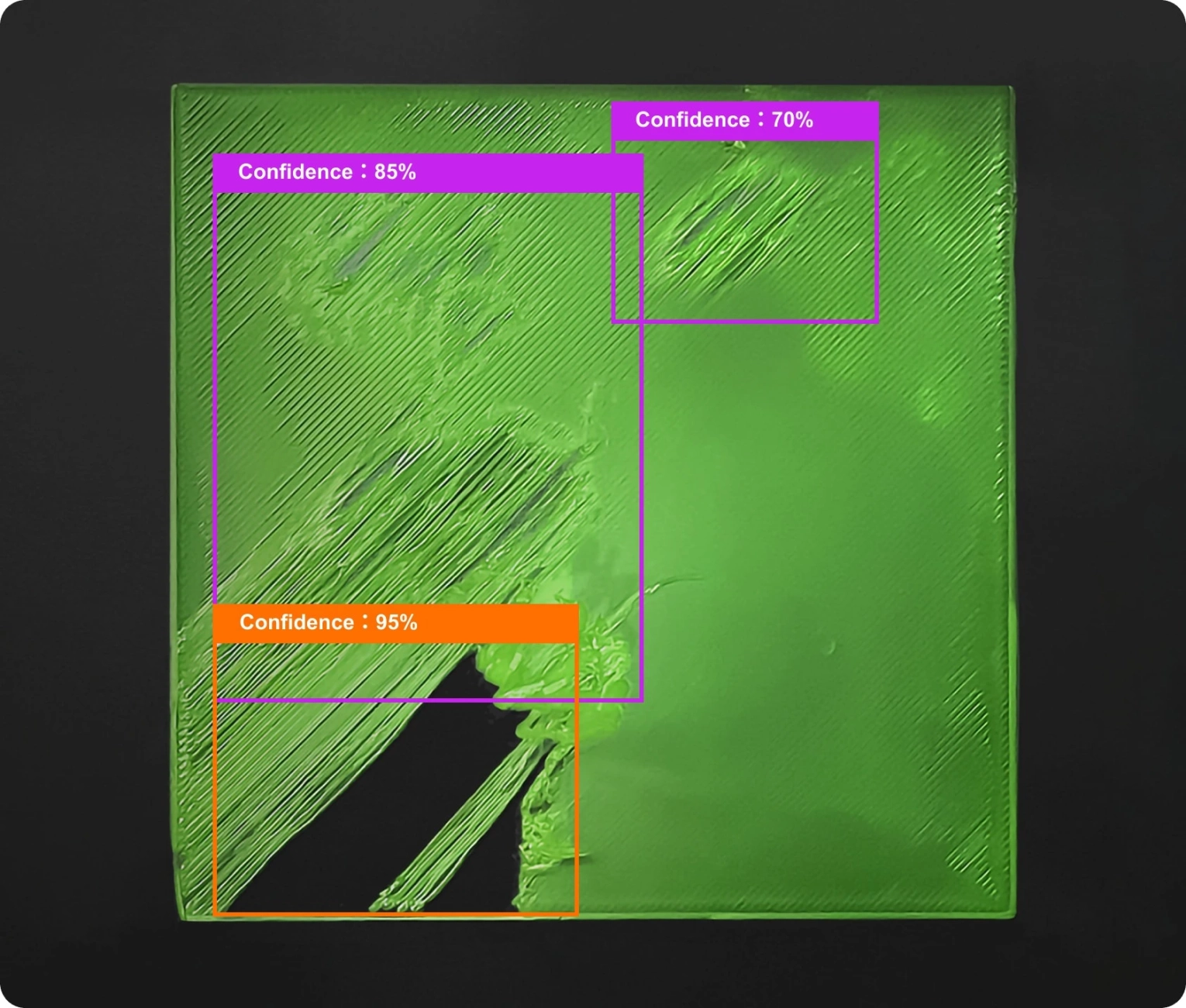 Вбудована система AI уважно стежить за процесом друку від першого шару до фінального результату. Якщо з’являється найменше відхилення, принтер миттєво повідомляє користувача, запобігаючи помилкам і втраті матеріалу.