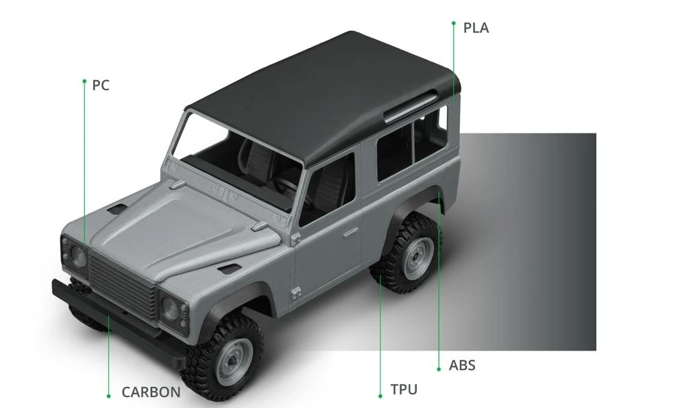 Таке поєднання відкриває можливість друку з вуглецевими, скловолоконними та технічними матеріалами - PA-CF, PET-CF, PC, ABS, ASA та іншими.