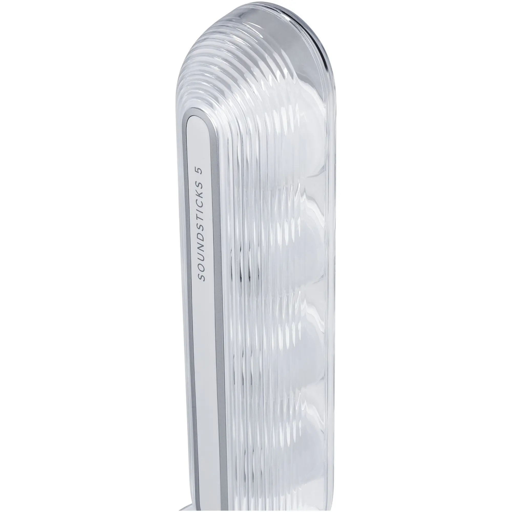 Акустична система побудована за схемою 2.1 і оснащена потужним сабвуфером, який забезпечує глибокий та насичений бас. Два прозорі сателіти з широкосмуговими динаміками формують чисту середину та виразні високі частоти. Такий баланс створює широку звукову сцену та дозволяє передавати музику, фільми й ігрові саундтреки об’ємно, деталізовано й природно. SoundSticks 5 White однаково добре підходить як для щоденного прослуховування, так і для мультимедійних завдань.