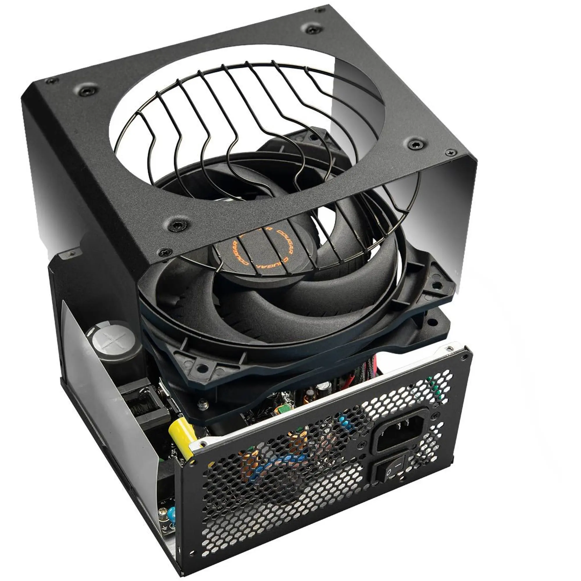Всередині застосовані якісні компоненти: японські конденсатори з температурною витривалістю до 105 °C гарантують стабільну роботу впродовж тривалого часу. Для охолодження використовується 120-мм вентилятор на гідродинамічному підшипнику (HDB), відзначається низьким рівнем шуму та плавною роботою. Спеціальна форма лопатей і система регулювання обертів забезпечують ефективне охолодження без надмірного шуму.