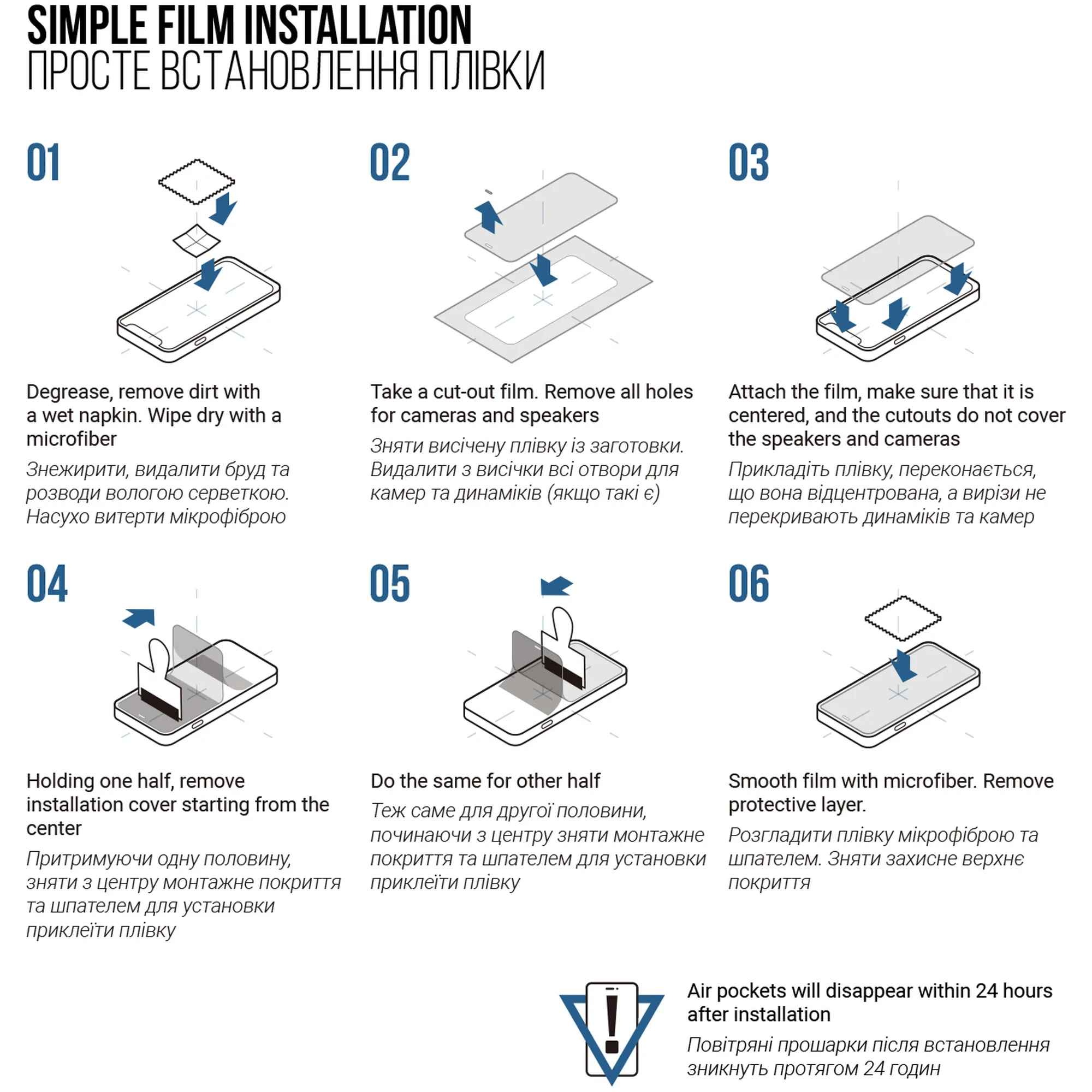 Установка гідрогелевої плівки ArmorStandart Matte не вимагає спеціальних навичок чи додаткових рідин. Вона легко наноситься на екран, а будь-які бульбашки повітря, які можуть утворитися в процесі, зникають вже протягом доби. Це дозволяє уникнути зайвого клопоту і забезпечувати ідеальний захист без необхідності повторної установки. При цьому плівка не впливає на яскравість і чіткість зображення, зберігаючи всі візуальні переваги вашого пристрою. Однак, для досягнення найкращих результатів і повної впевненості в якості захисту, рекомендується довірити установку професіоналам.