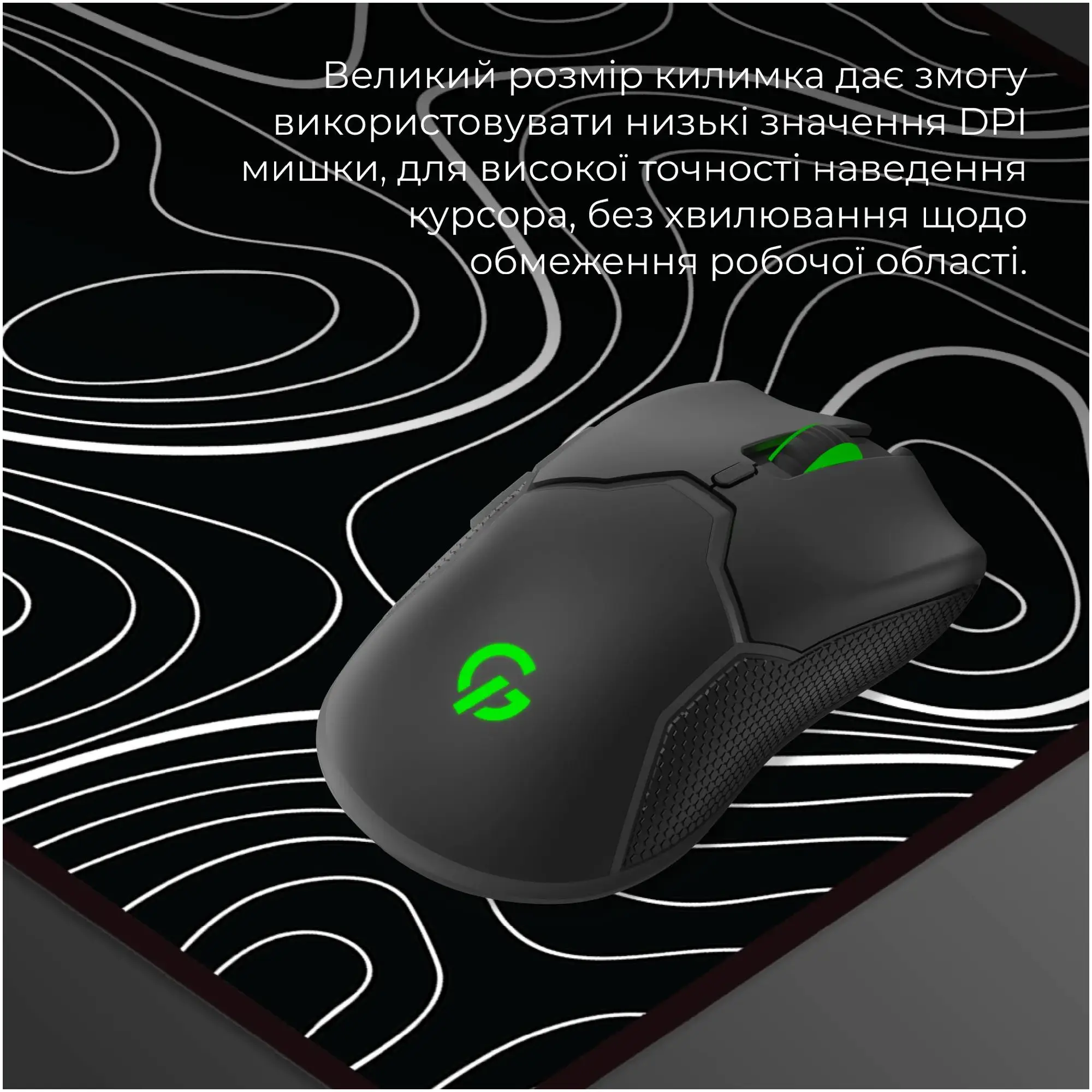 Мультиспандекс у якості верхнього покриття створює гладку та збалансовану поверхню, що поєднує властивості Speed/Control. Завдяки цьому килимок підходить як для динамічних шутерів, так і для стратегій, де важлива висока точність. Габарити 900 × 400 × 3 мм забезпечують простір для вільного розташування клавіатури та миші.