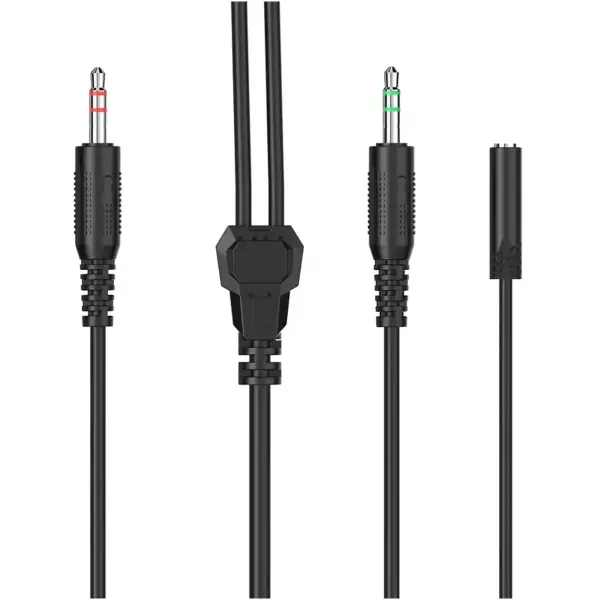 Hator ESH series Black (ACC412) – це компактний аудіокабель, призначений для зручного підключення гарнітури або навушників із роздільними аудіороз’ємами. Він дозволяє об’єднати два 3.5 мм female-роз’єми в один 3.5 мм male, забезпечуючи коректну роботу звуку та мікрофона на сумісних пристроях.