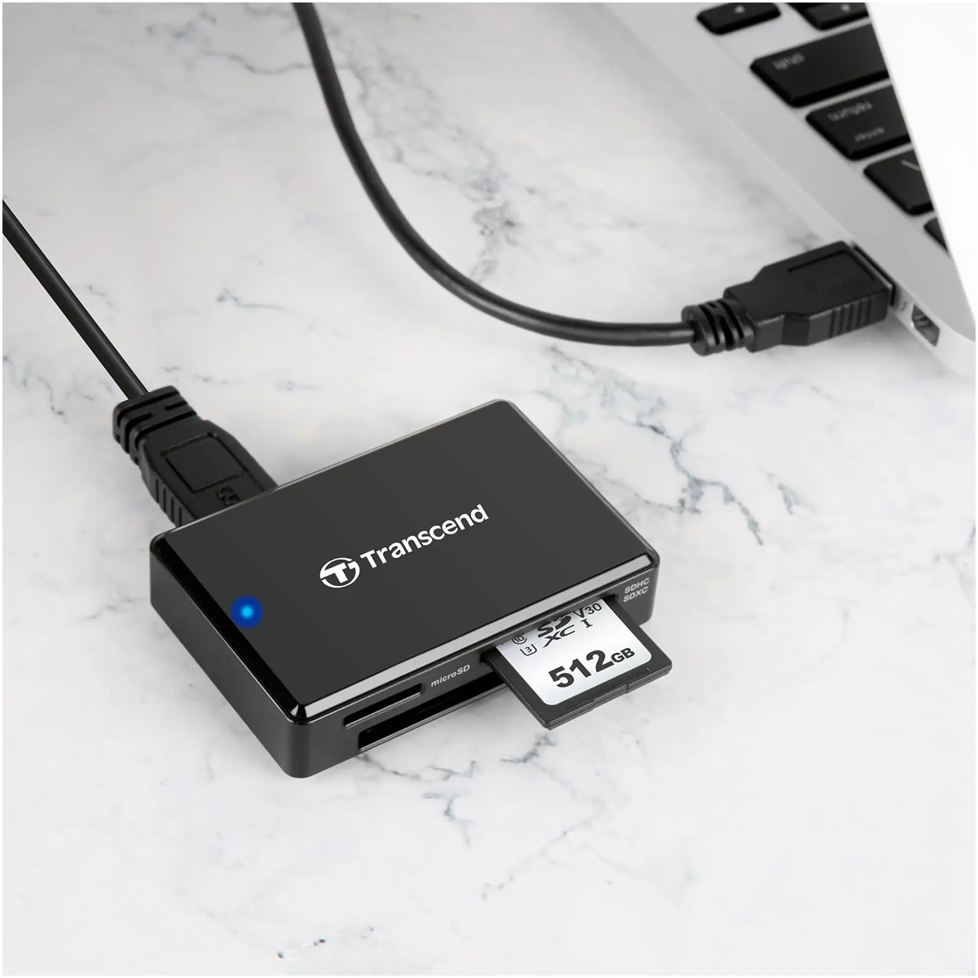 Transcend TS-RDF8K2 підключається через micro-USB із переходом на USB-A, що забезпечує широку сумісність із ноутбуками та комп’ютерами. Пристрій не потребує встановлення драйверів і готовий до роботи відразу після підключення. Це робить його надійним інструментом для щоденних і професійних задач, забезпечуючи стабільну продуктивність та універсальність у компактному форм-факторі.