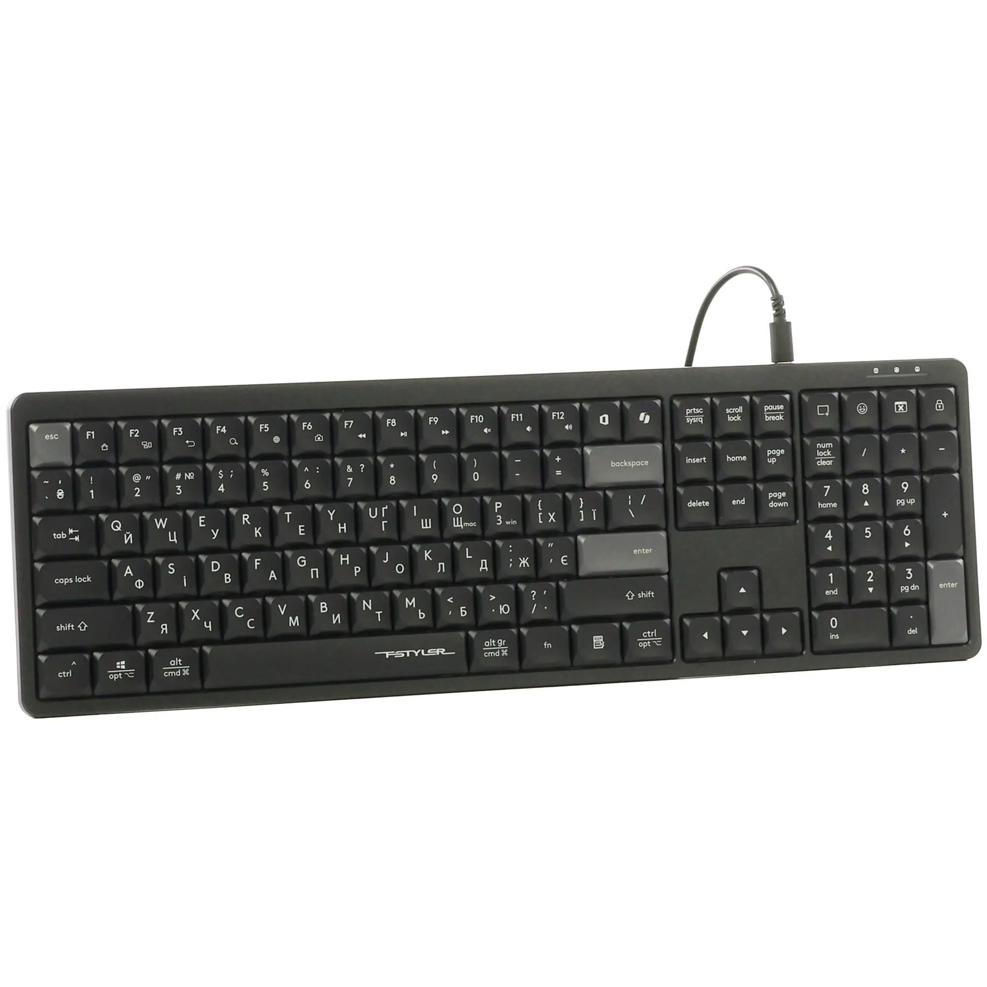 Клавіатура A4Tech Fstyler FX55 Black обладнана тихими ножичними перемикачами, що гарантують м’яке, плавне й водночас чітке натискання. Невеликий хід клавіш дозволяє швидко вводити текст, зменшуючи навантаження на пальці та підвищуючи загальну швидкість друку. Дротове підключення забезпечує миттєвий відгук без затримок, що особливо важливо при виконанні робочих завдань або коли потрібна висока точність.